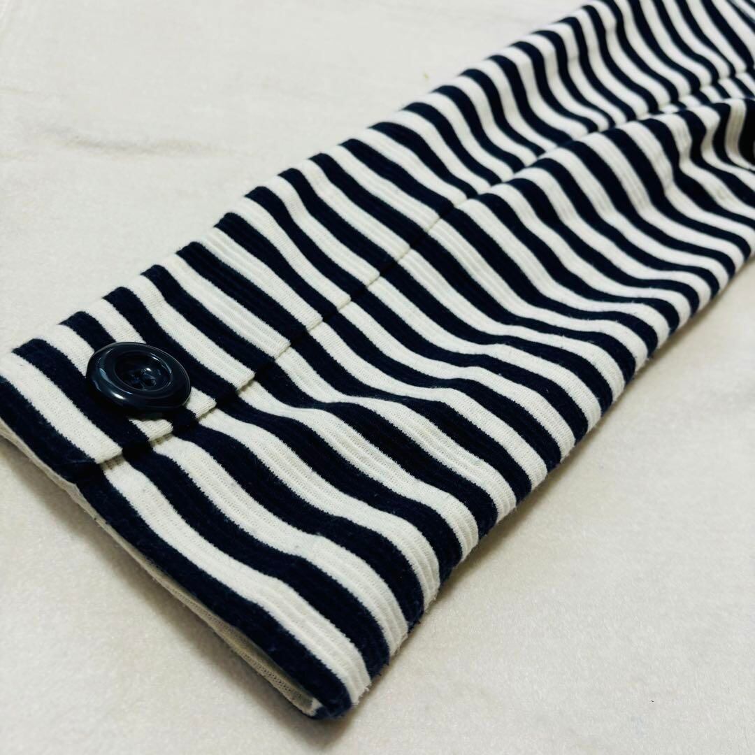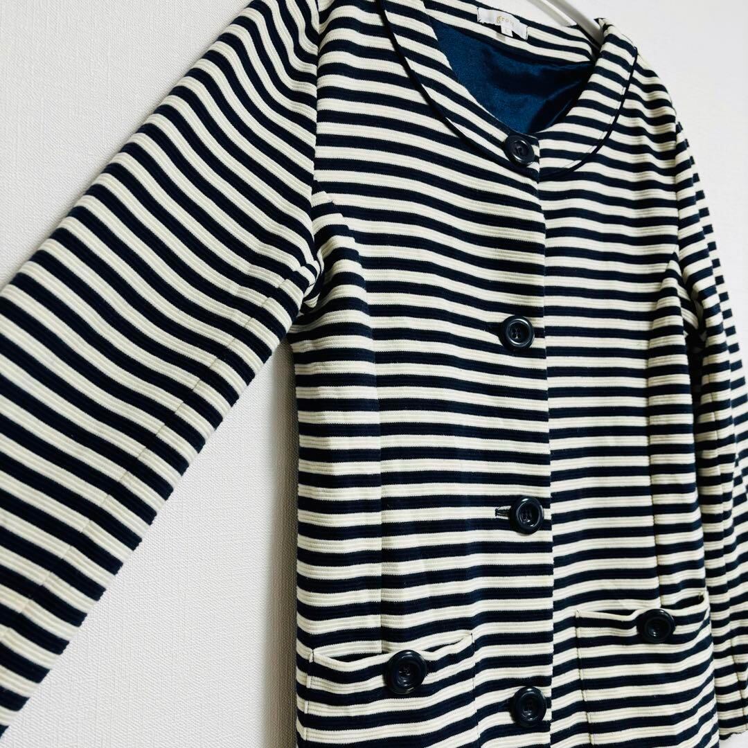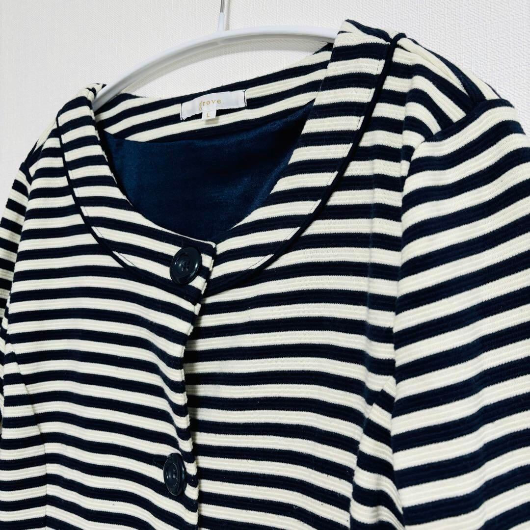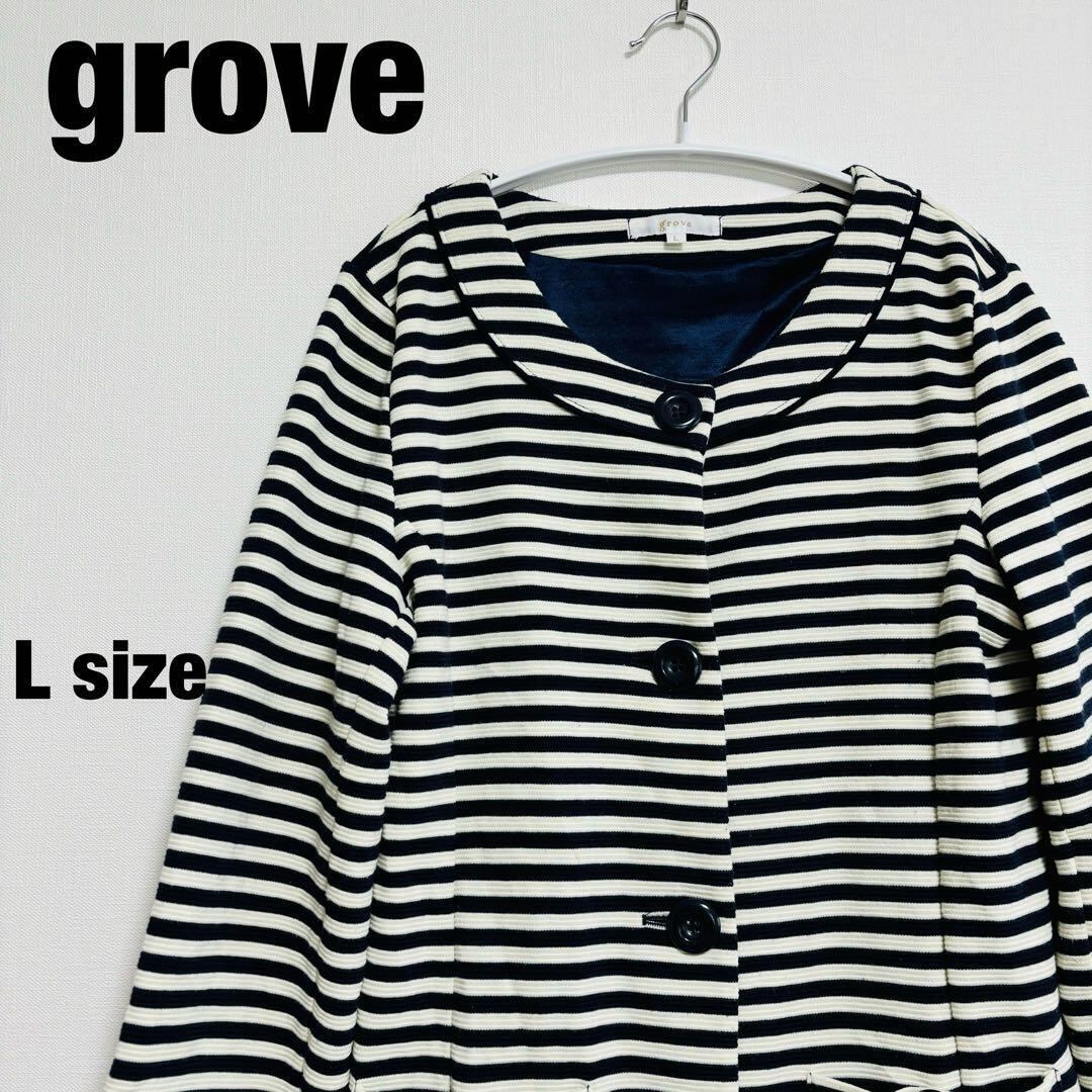 グローブ grove ジャケット ストライプ Lサイズ 長袖 ノーカラー ロング丈