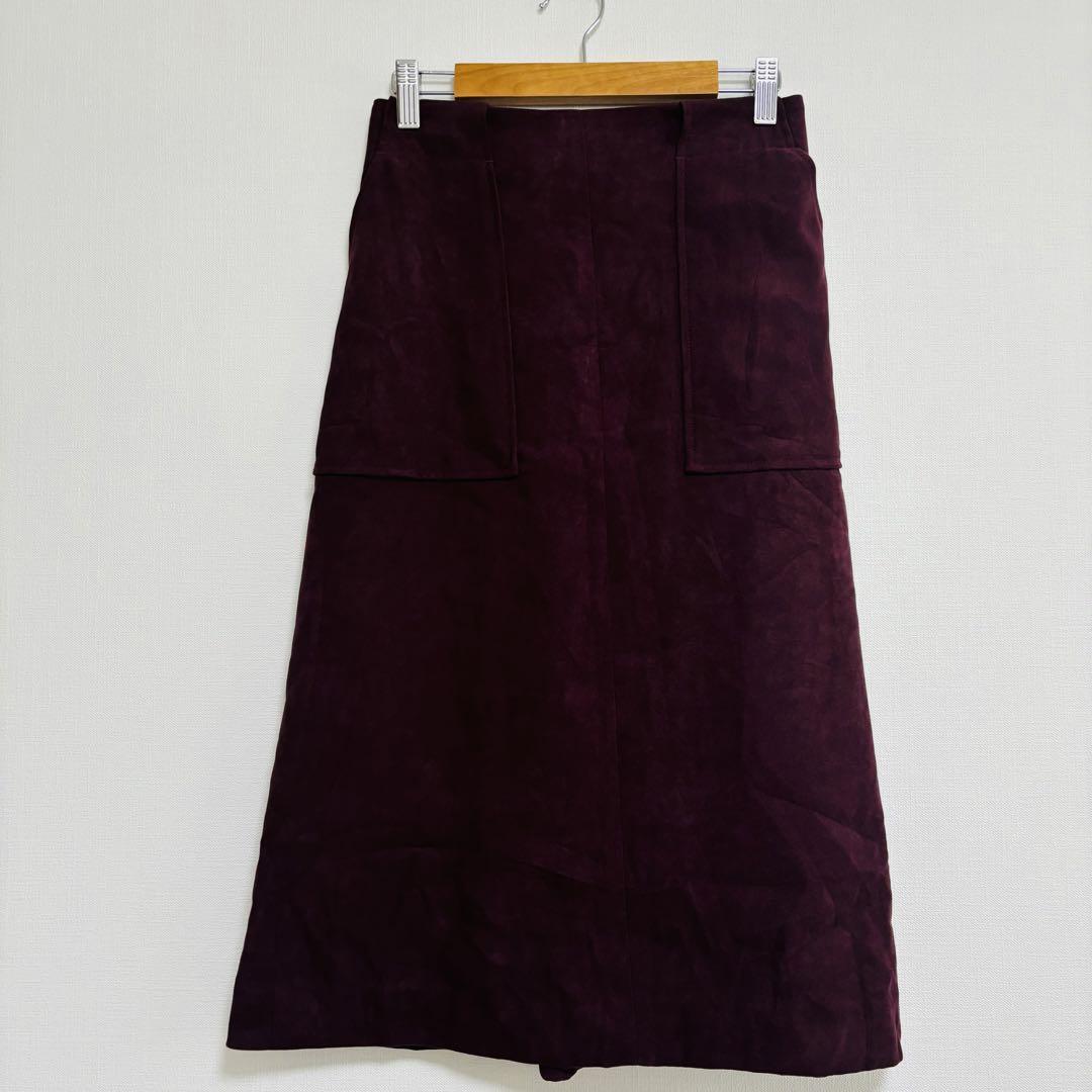 鮮やかな赤紫色とビックポケットが特徴のかわいいスカートです!