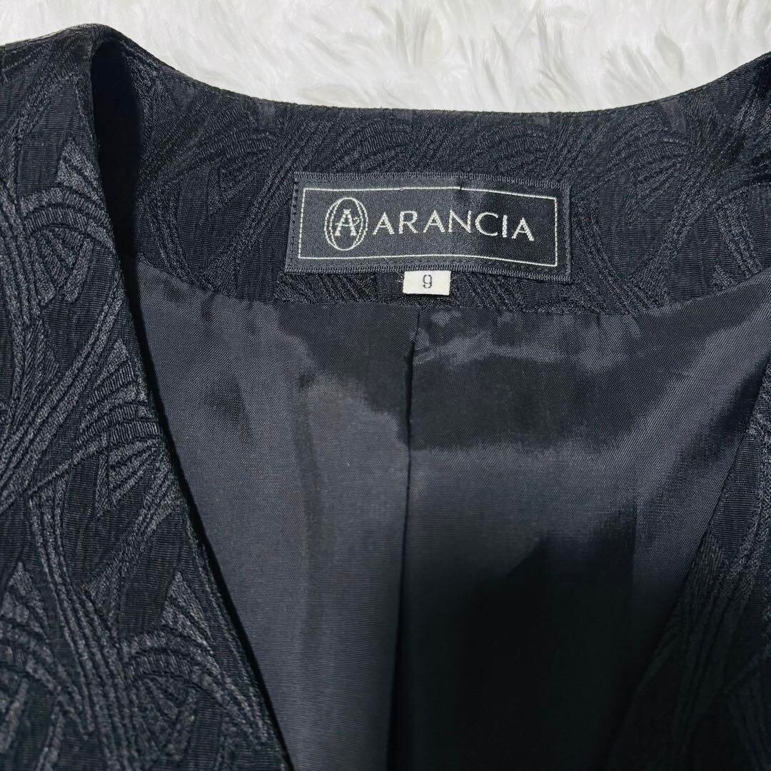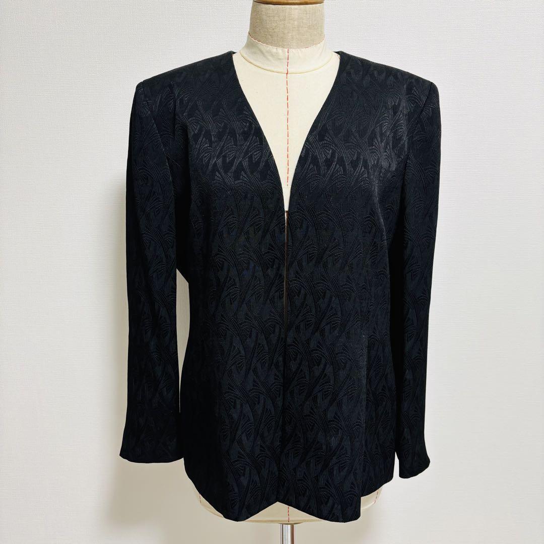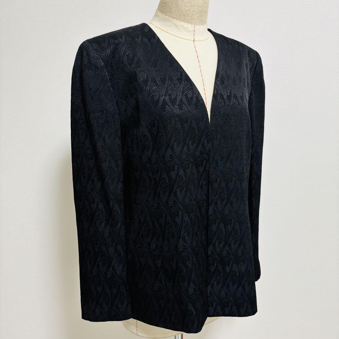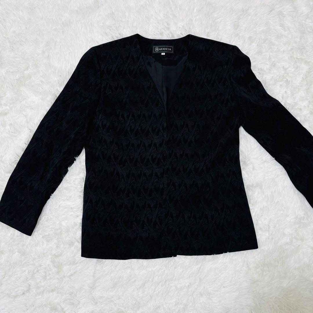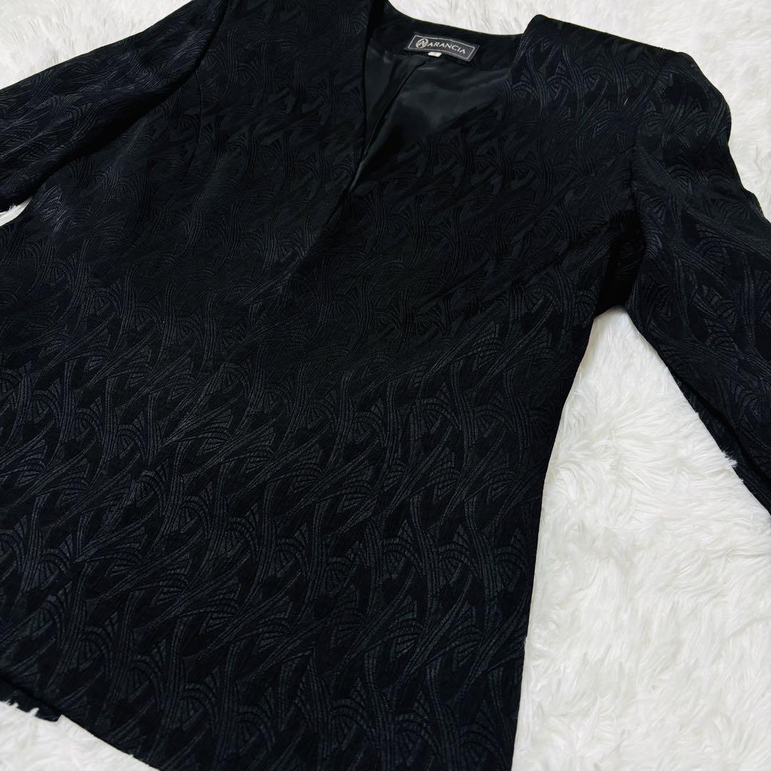 アランシア ARANCIA ブラック ノーカラージャケット M フォーマル 総柄