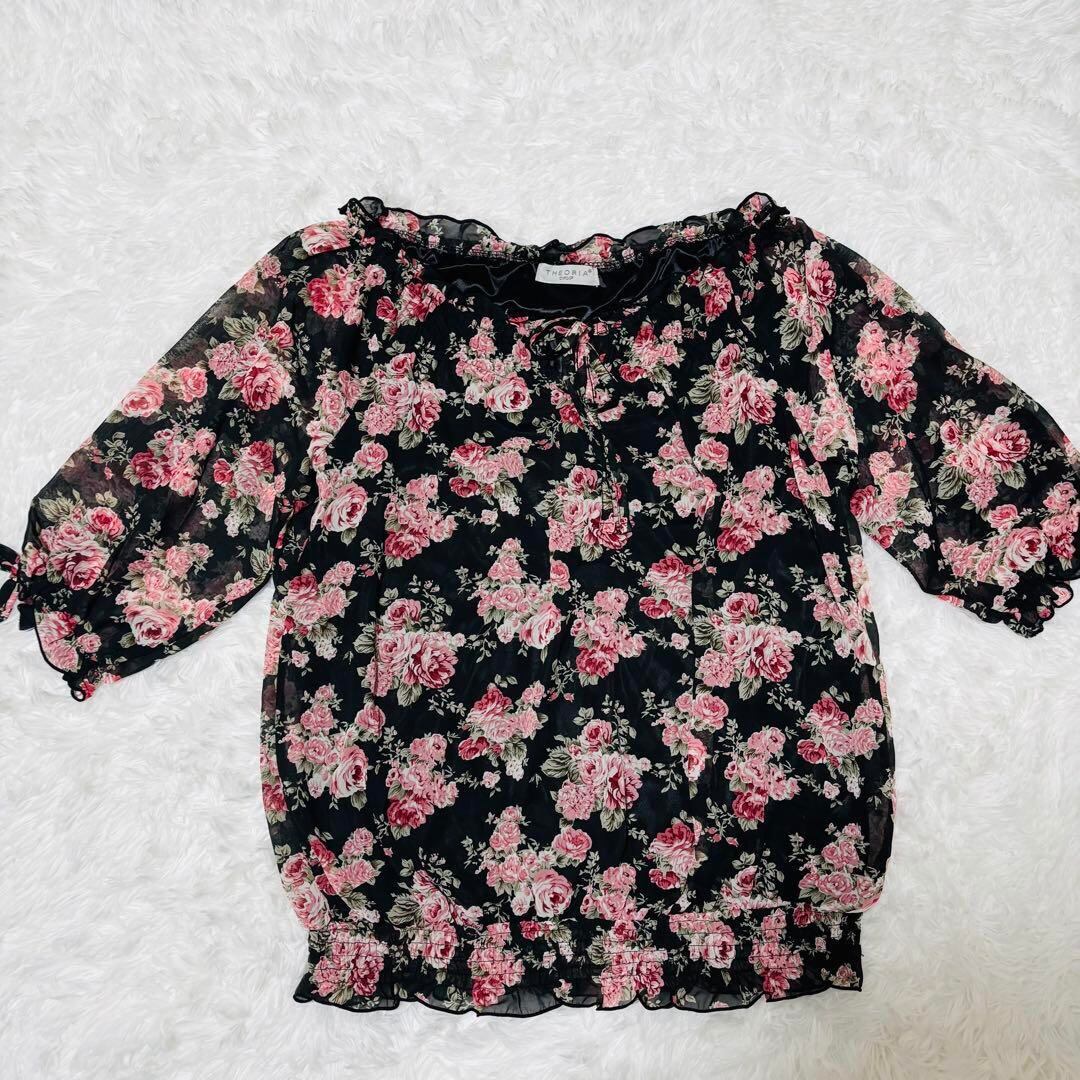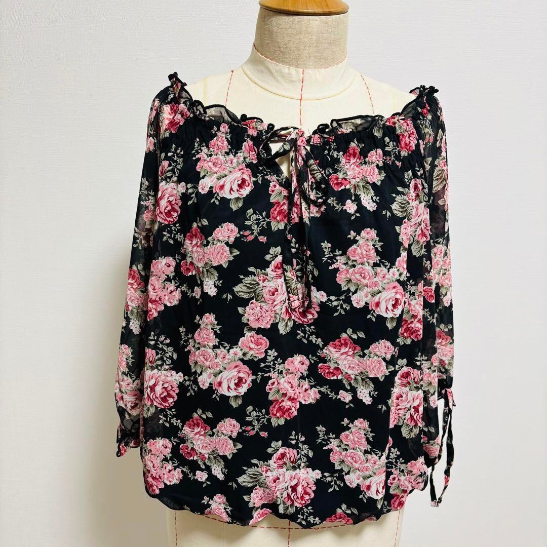 セオリア THEORIA 花柄 オフショルダー ブラウス Lサイズ 総柄
