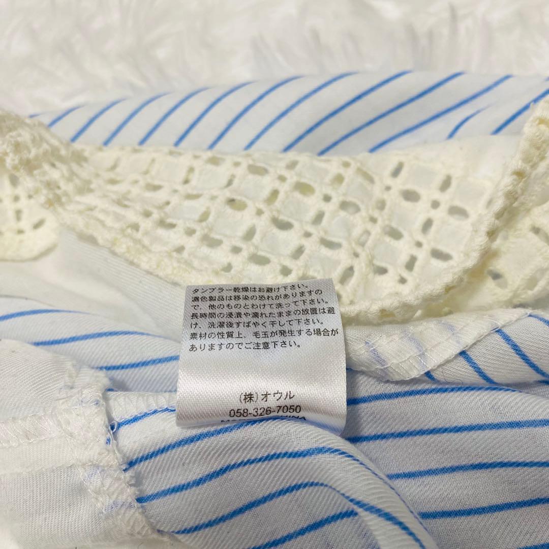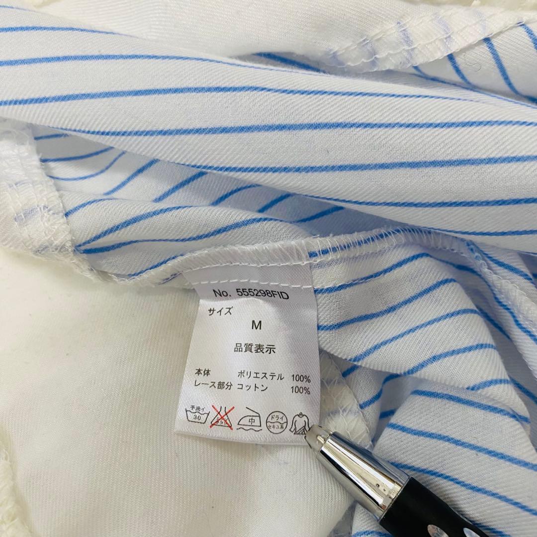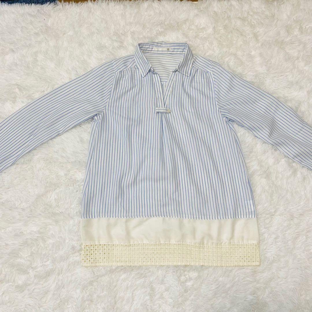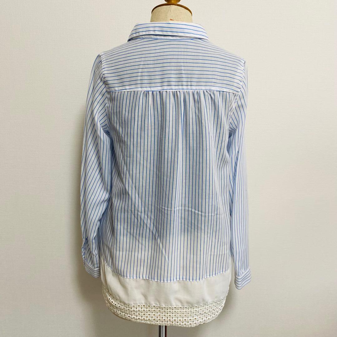 イッツデモ ITS' DEMO ブラウス ストライプ 長袖 レース Mサイズ