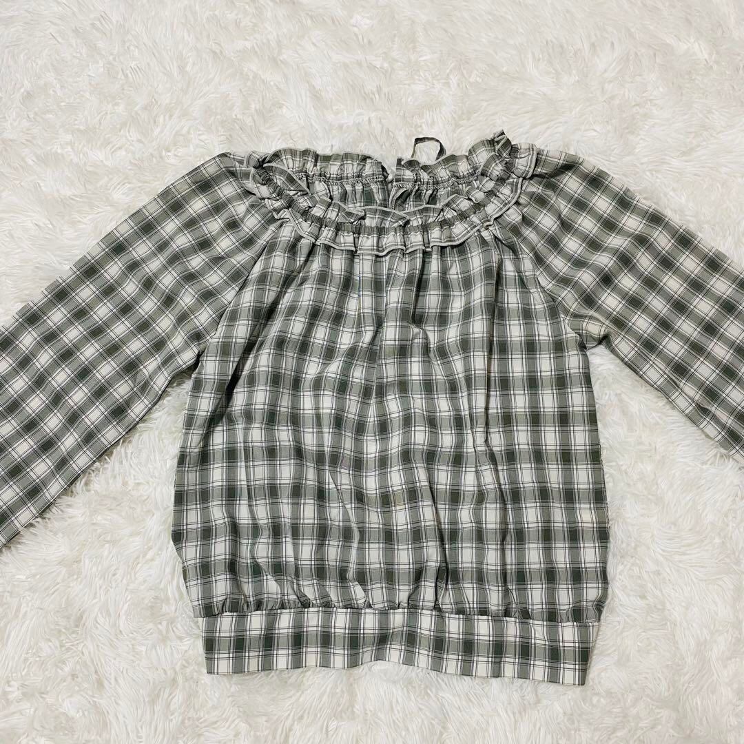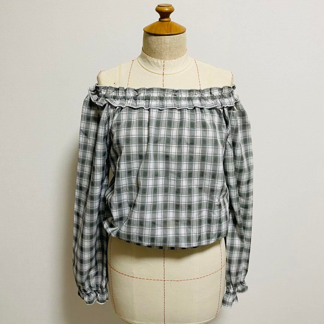 フリルとチェック柄が可愛い逸品です♪オフショルダーでもお使いいただけます♪