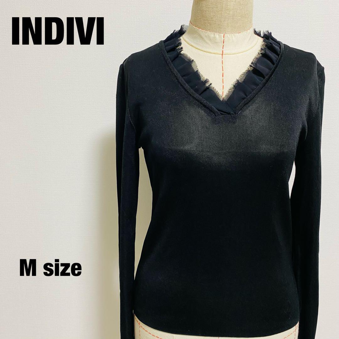インディヴィ INDIVI インナー Vネック 長袖 フリル M 【445】