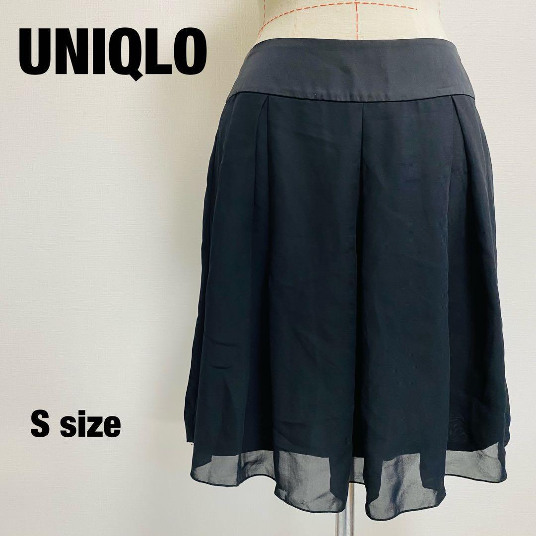 ユニクロ UNIQLO ブラック 膝丈スカート フレア Sサイズ 【468】