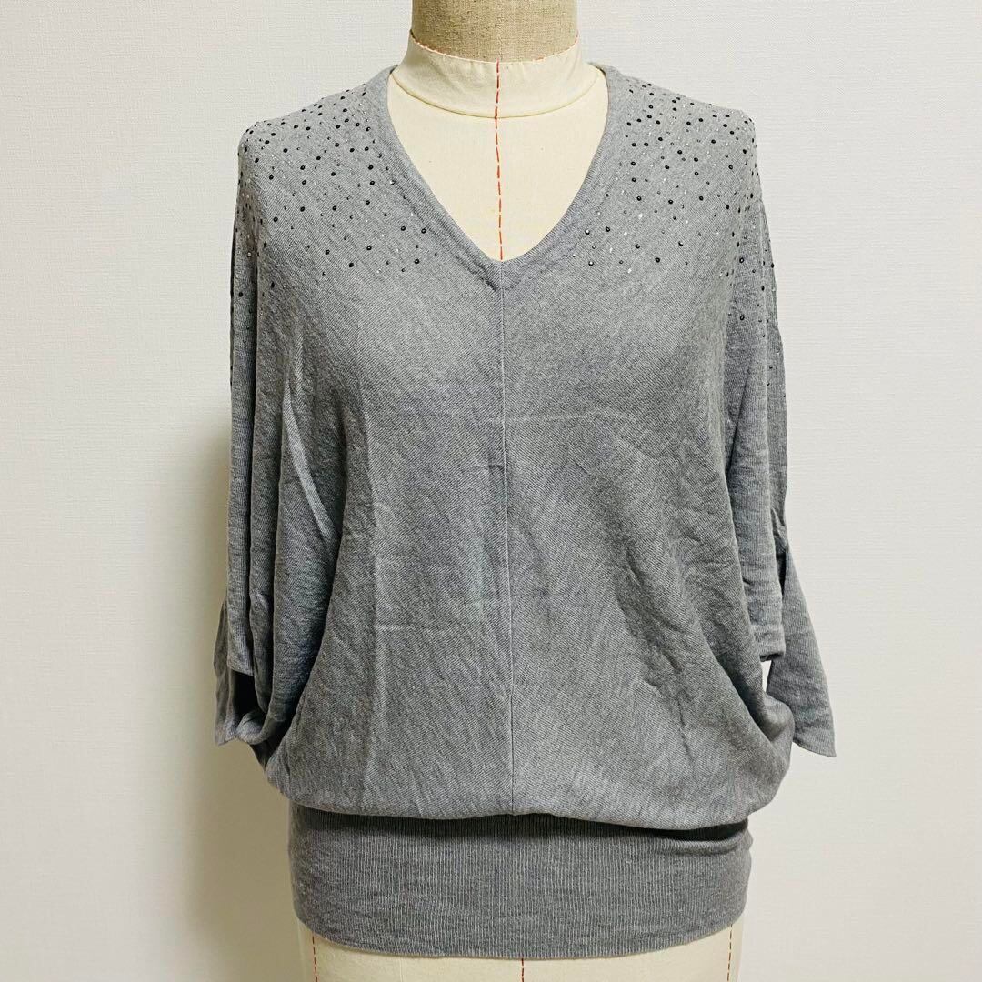 ジュエルチェンジズ ニット 長袖 Vネック グレー フリーサイズ