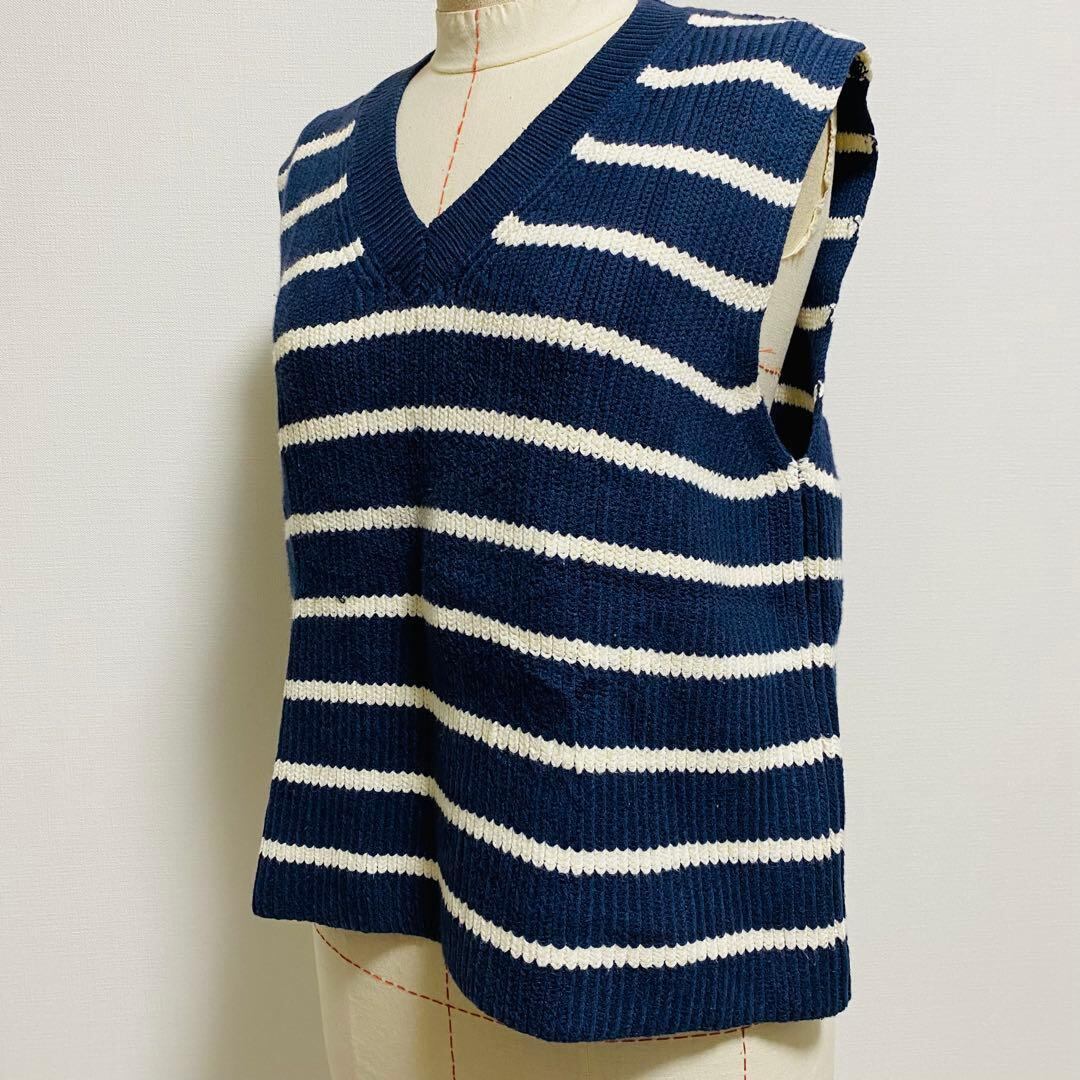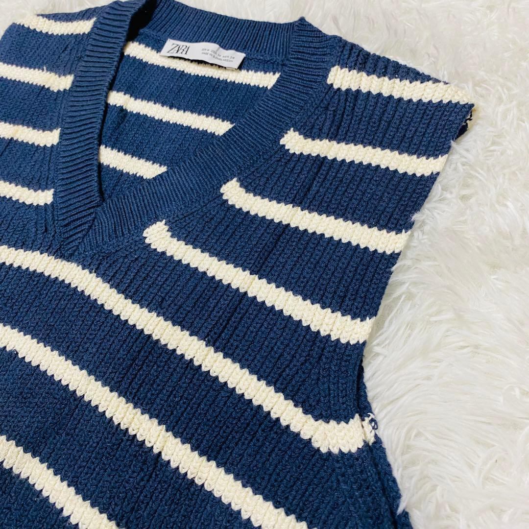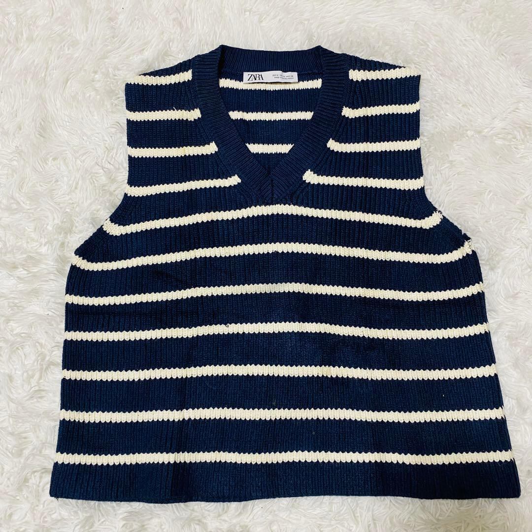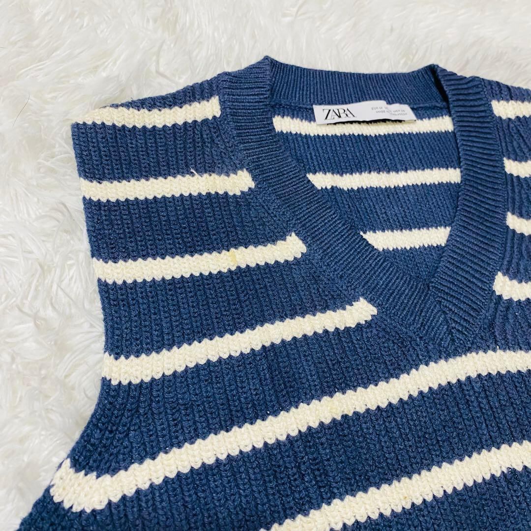 ザラ ZARA ニット ストライプ ノースリーブ Vネック Mサイズ 【693】