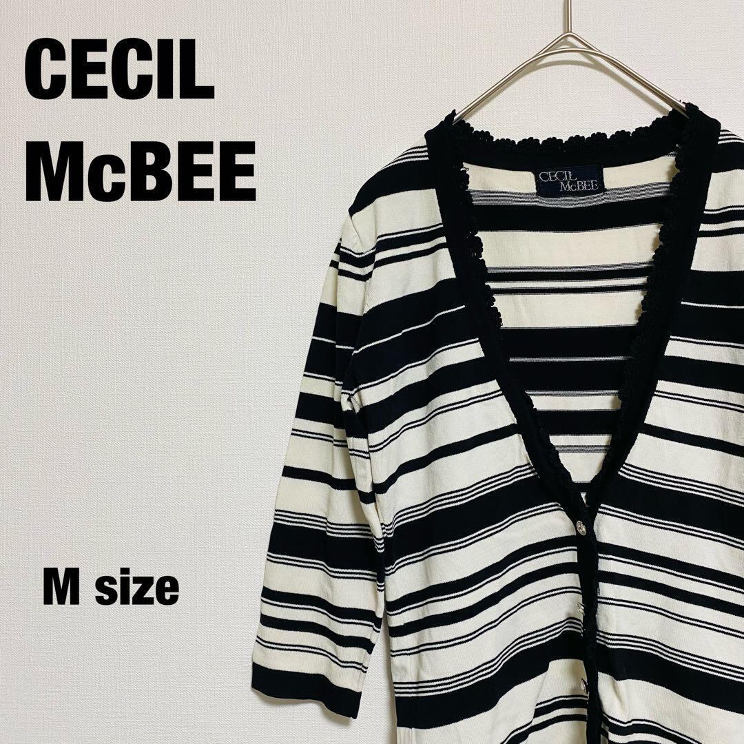 セシルマクビー CECIL McBEE カーディガン ストライプ レース M