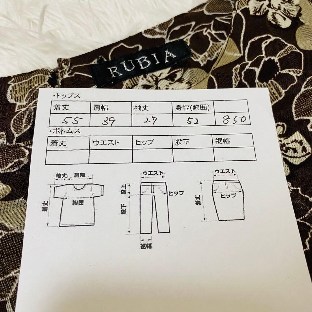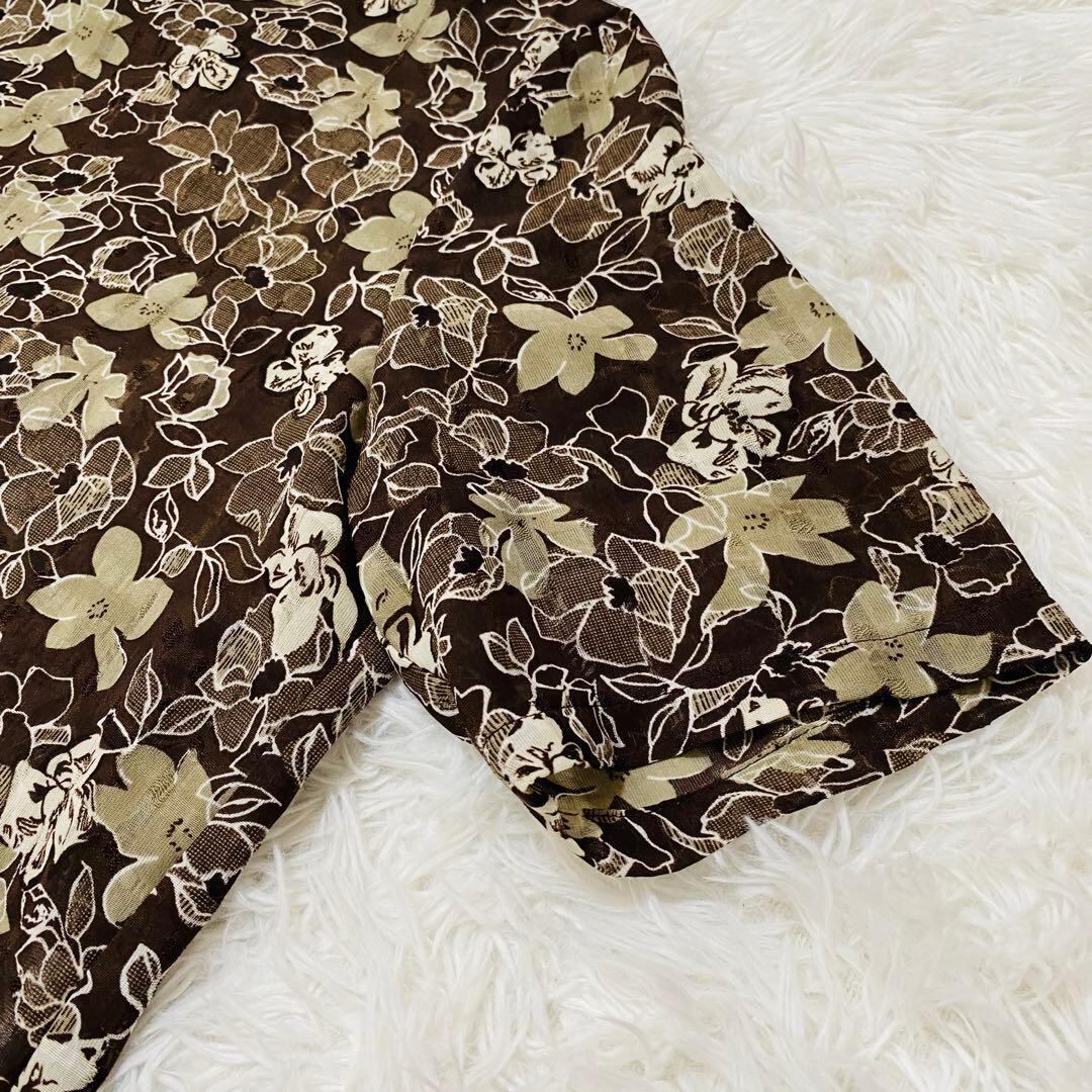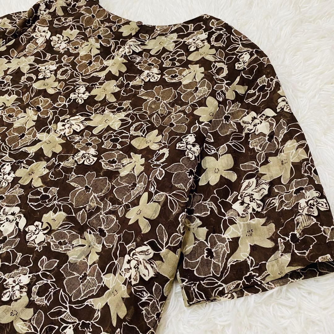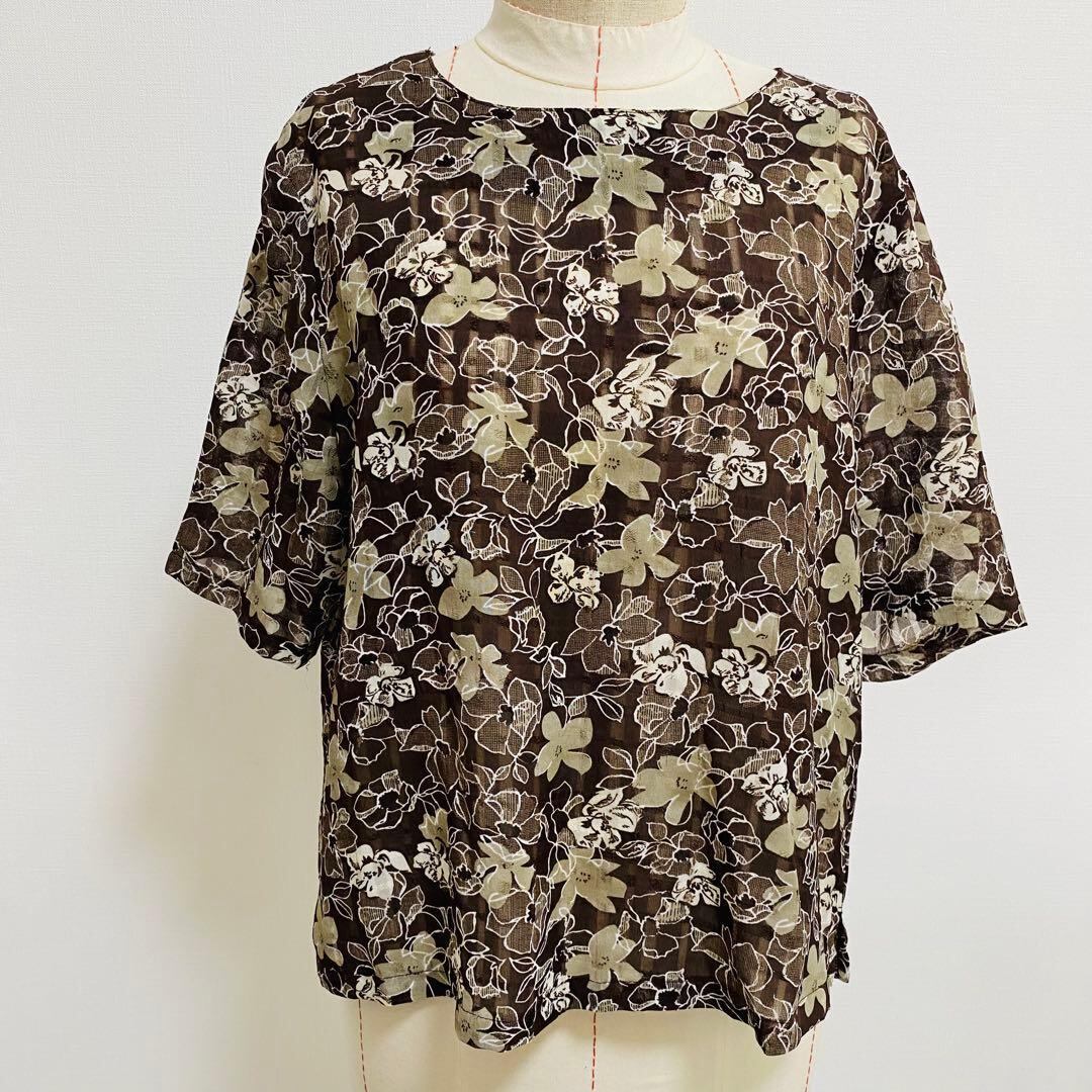 ルビア シャツ カットソー Lサイズ セットアップ 透け感 ボタニカル【851