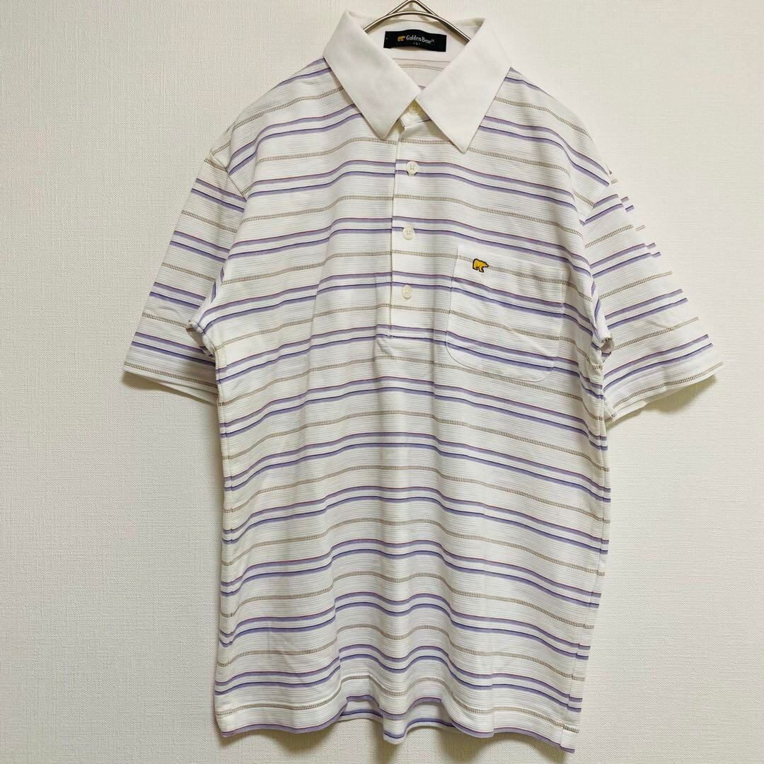 ゴールデンベア Golden Bear ポロシャツ ブルー ストライプ Sサイズ
