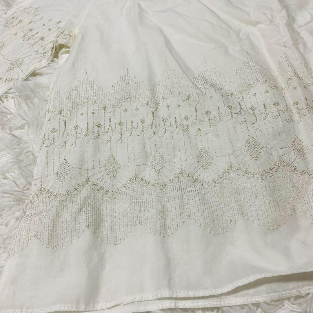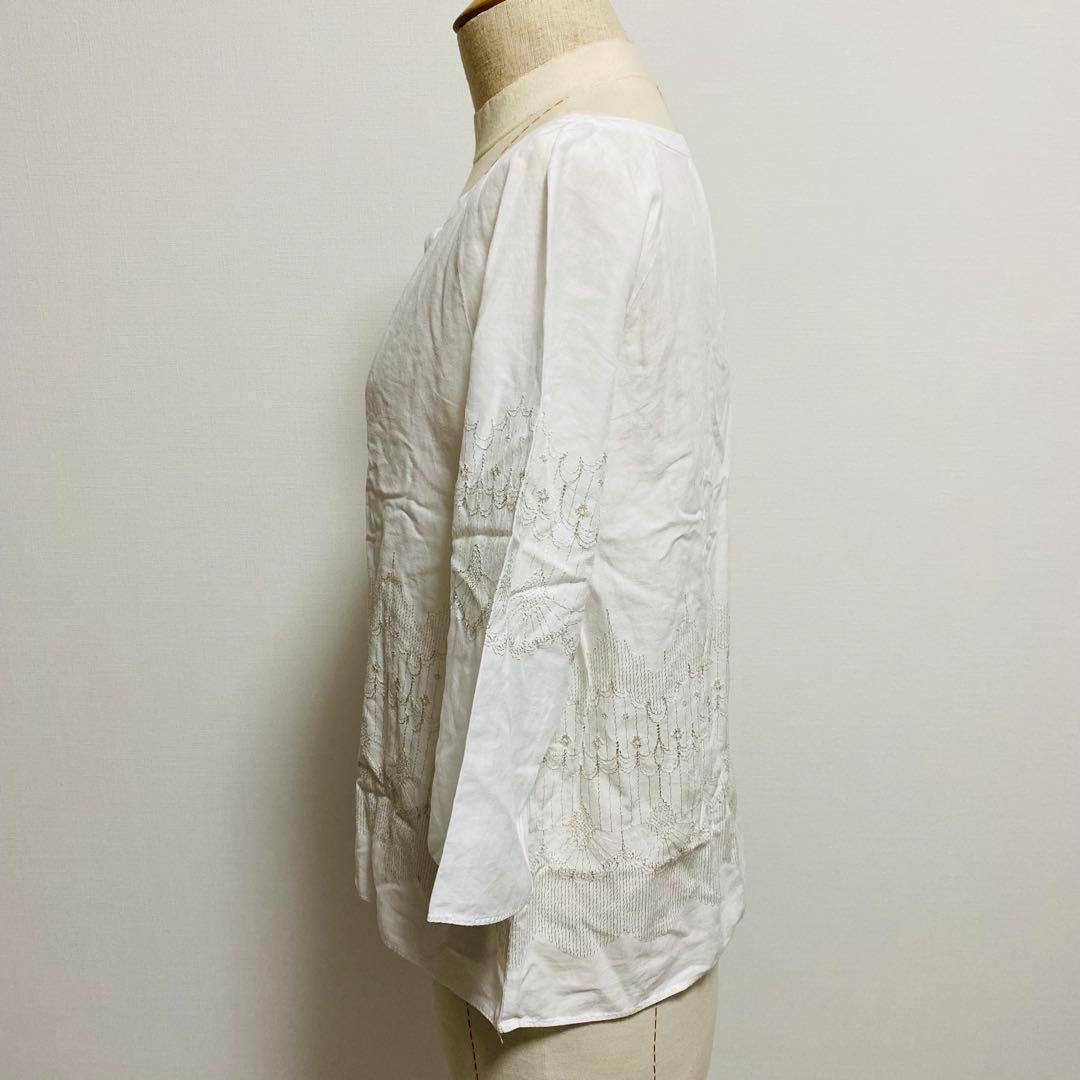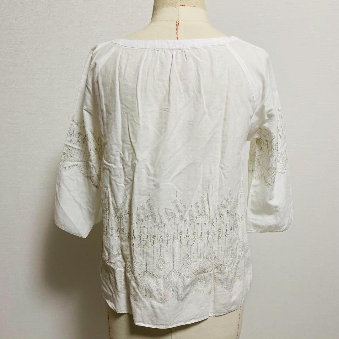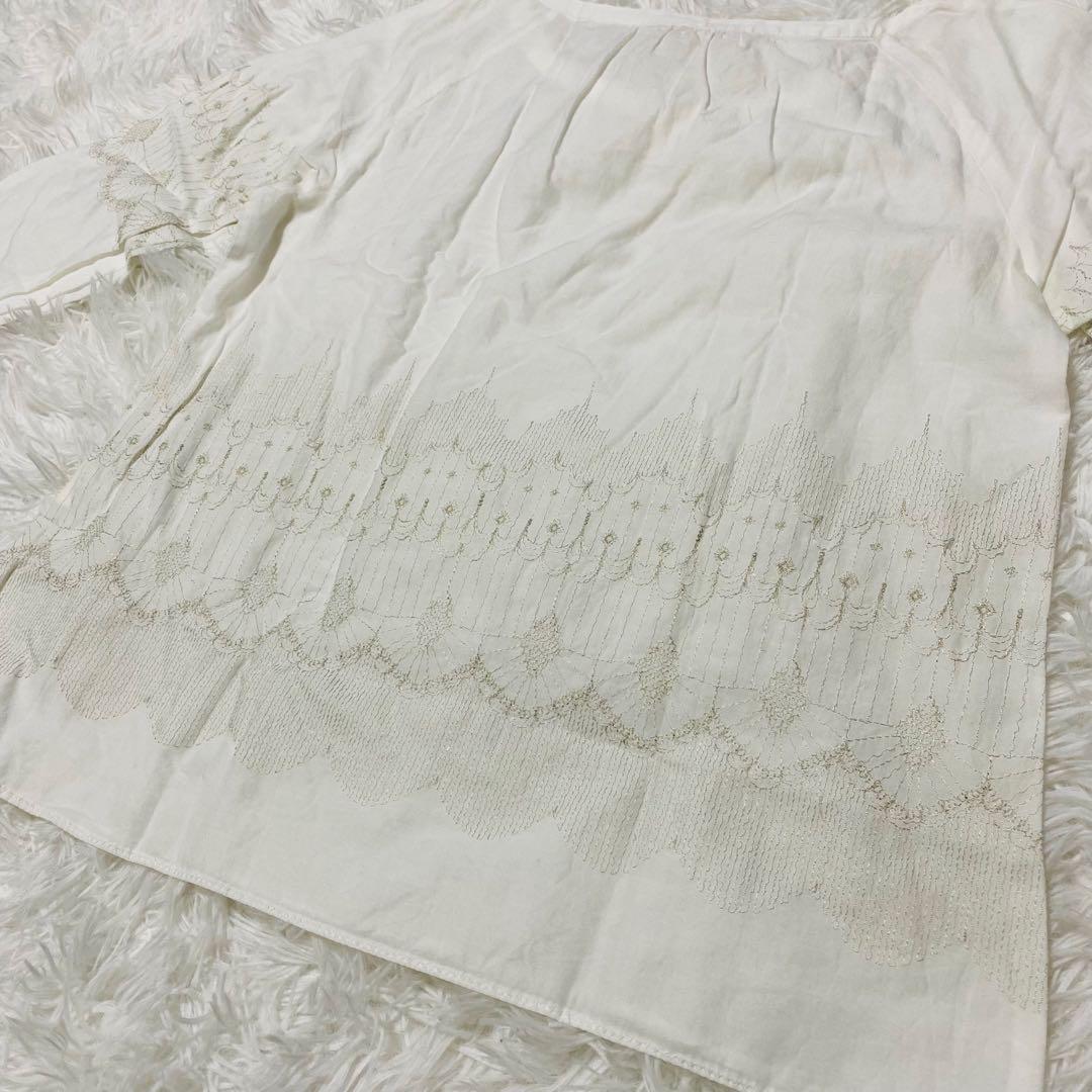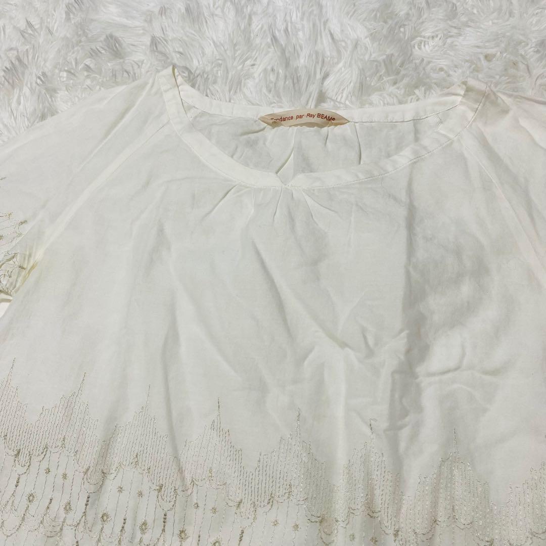 ビームス BEAMS カットソー 五分袖 刺繍 透け感 フリーサイズ 【494】