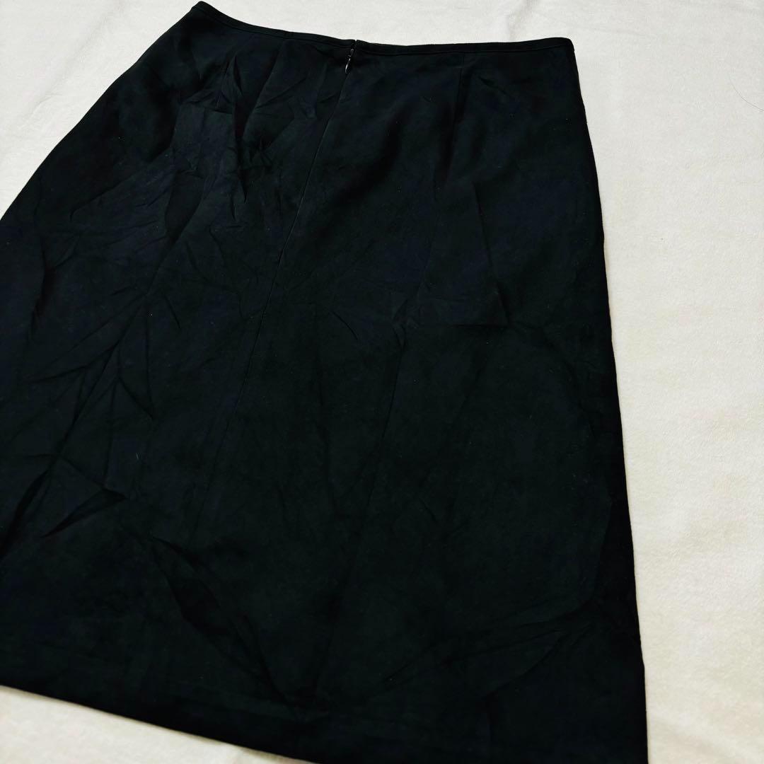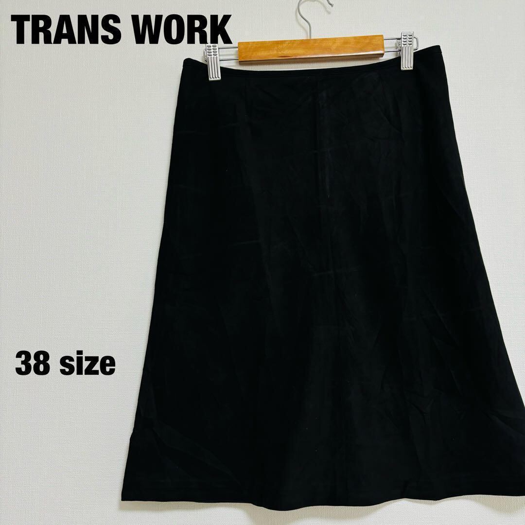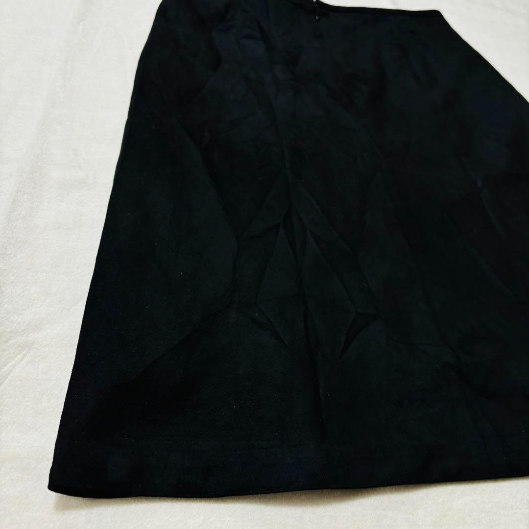 トランスワーク TRANS WORKひざ丈スカート 黒 タイト スウェード調