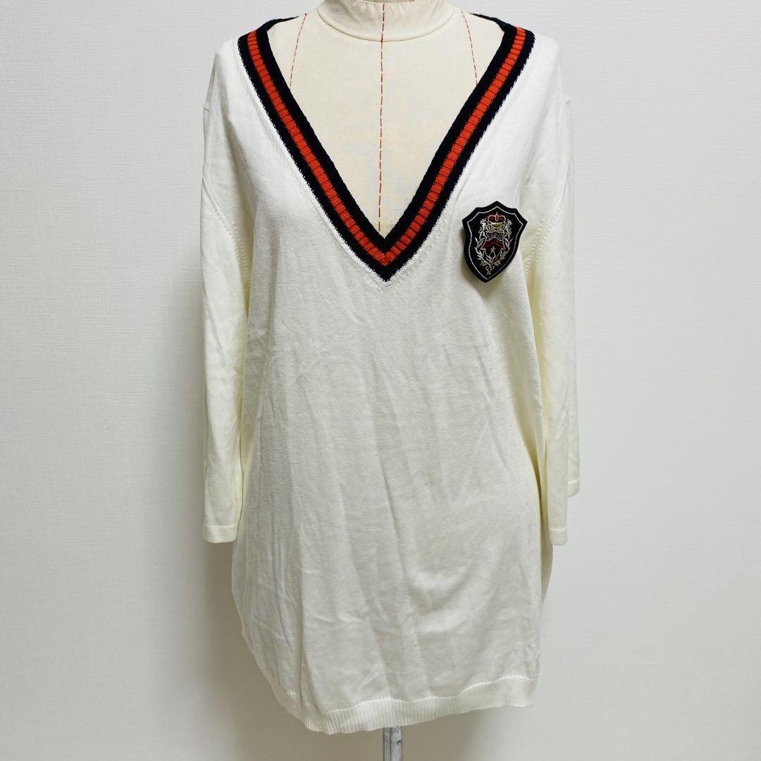 組曲 KUMIKYOKU セーター Lサイズ ワッペン Vネック 【1014】
