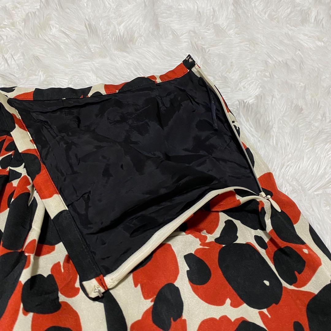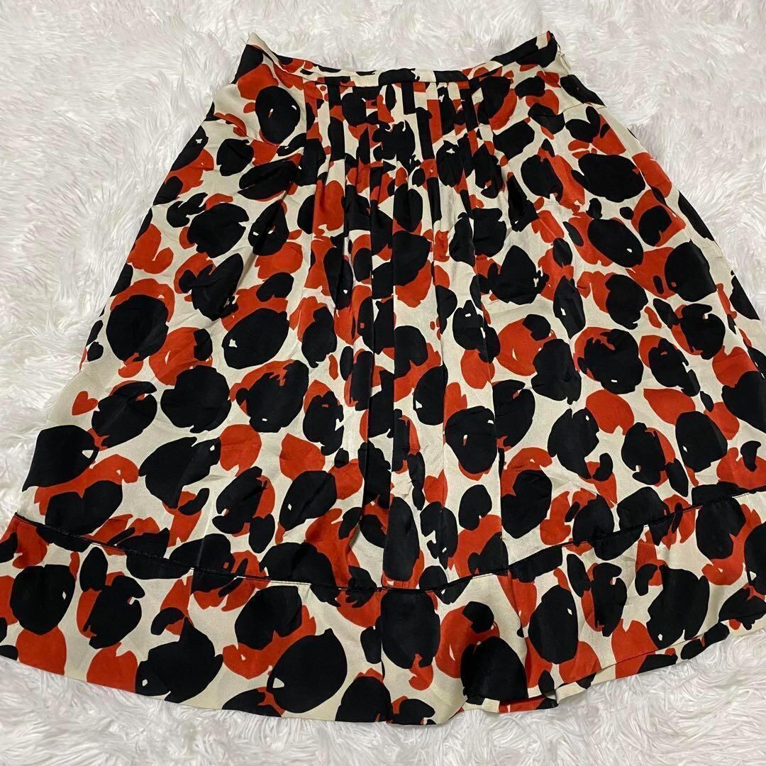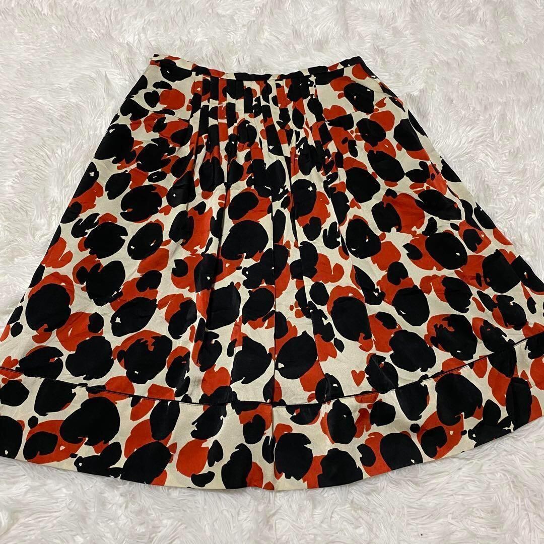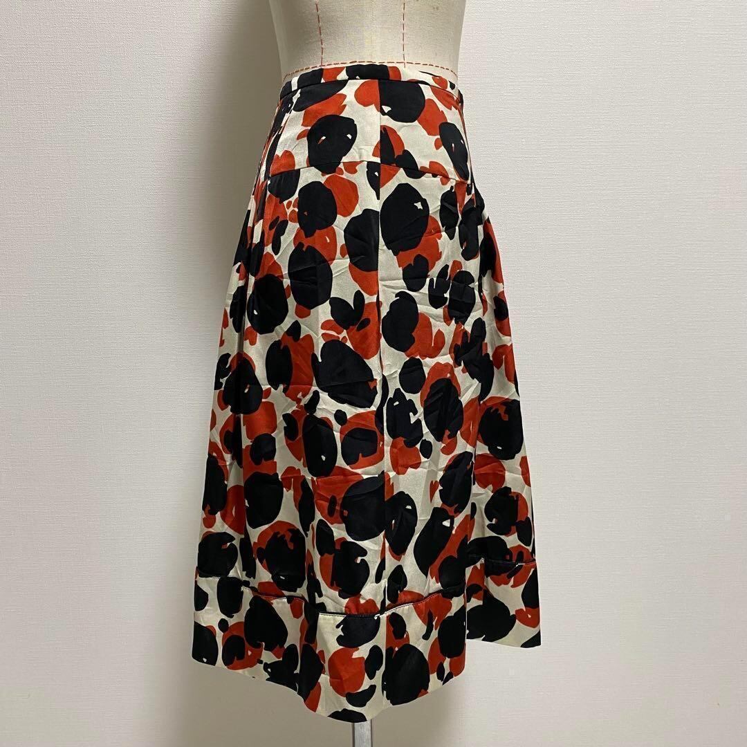 イネド INED 膝丈スカートプリーツ フレア 総柄 M ドット 【632】