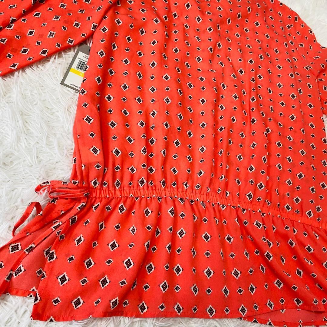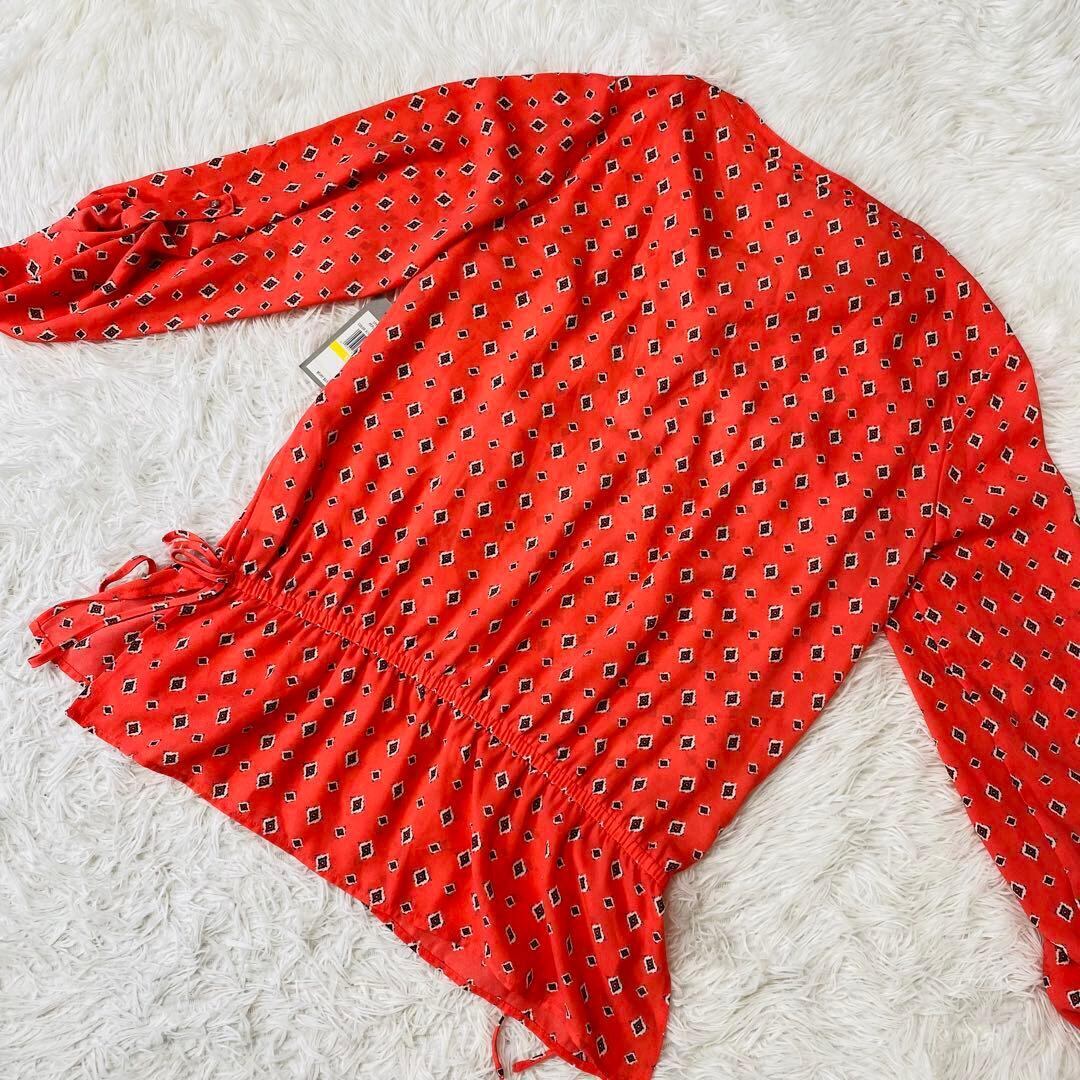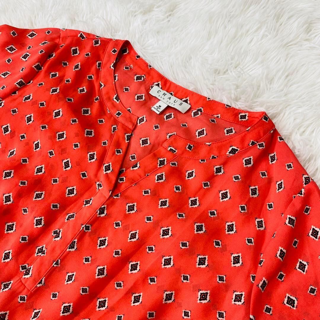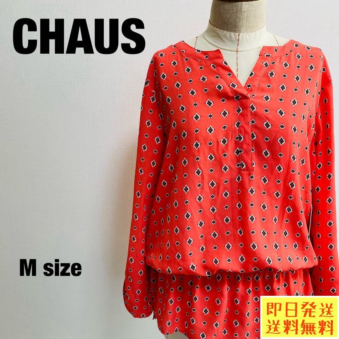 CHAUS 長袖ブラウス オレンジ 総柄 Mサイズ 【1052】