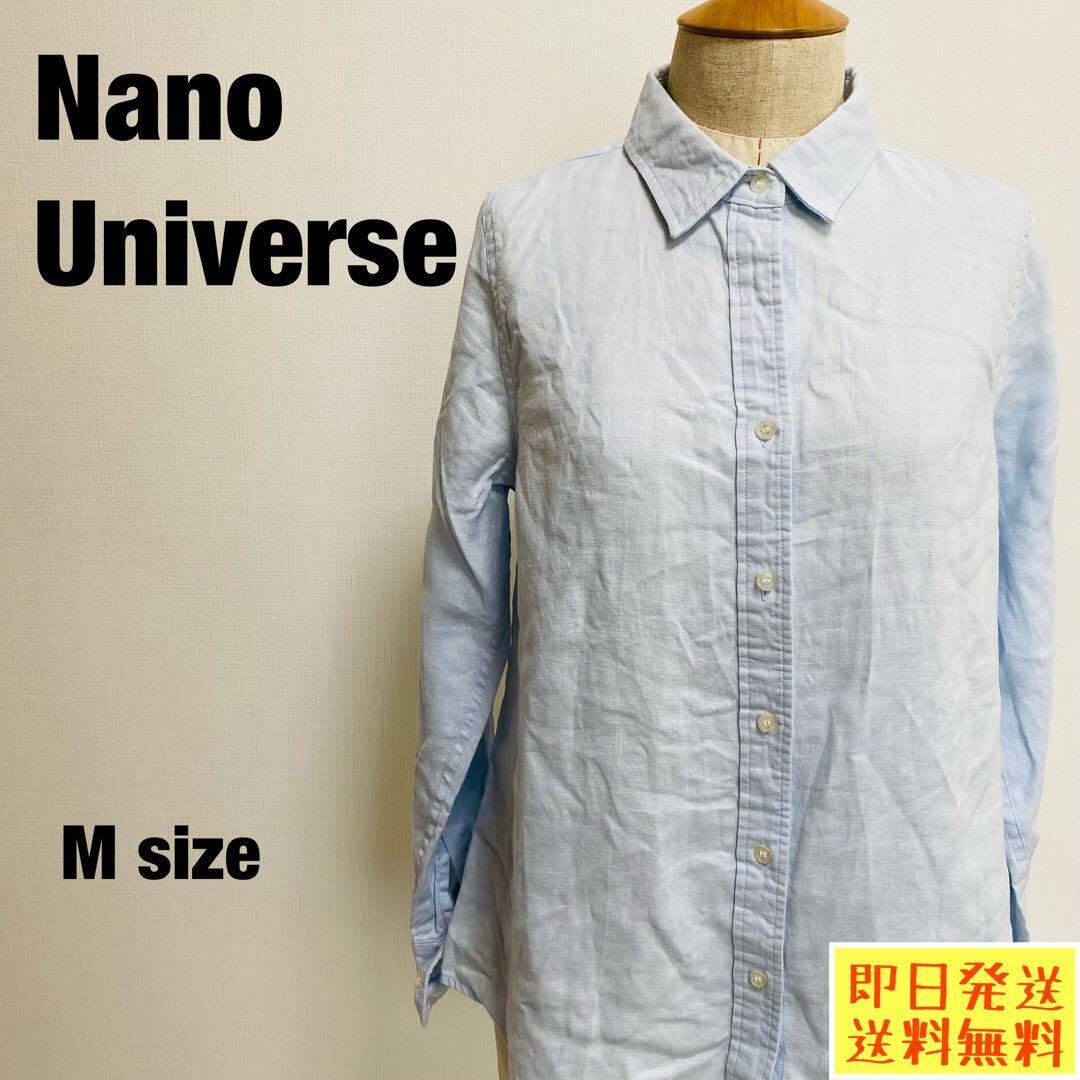【即日発送】ナノユニバース ネルシャツ Mサイズ ライトブルー 麻【1062】