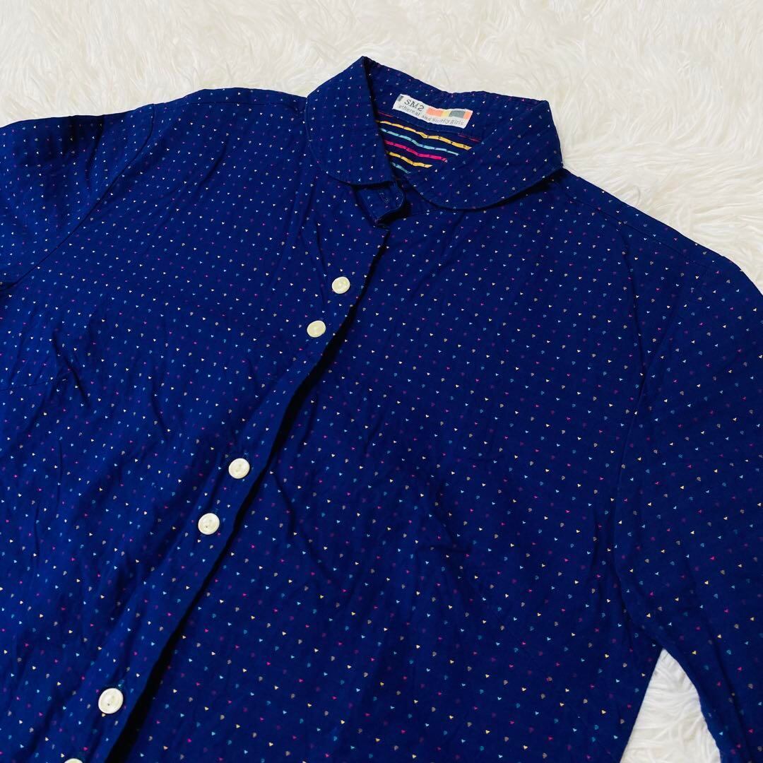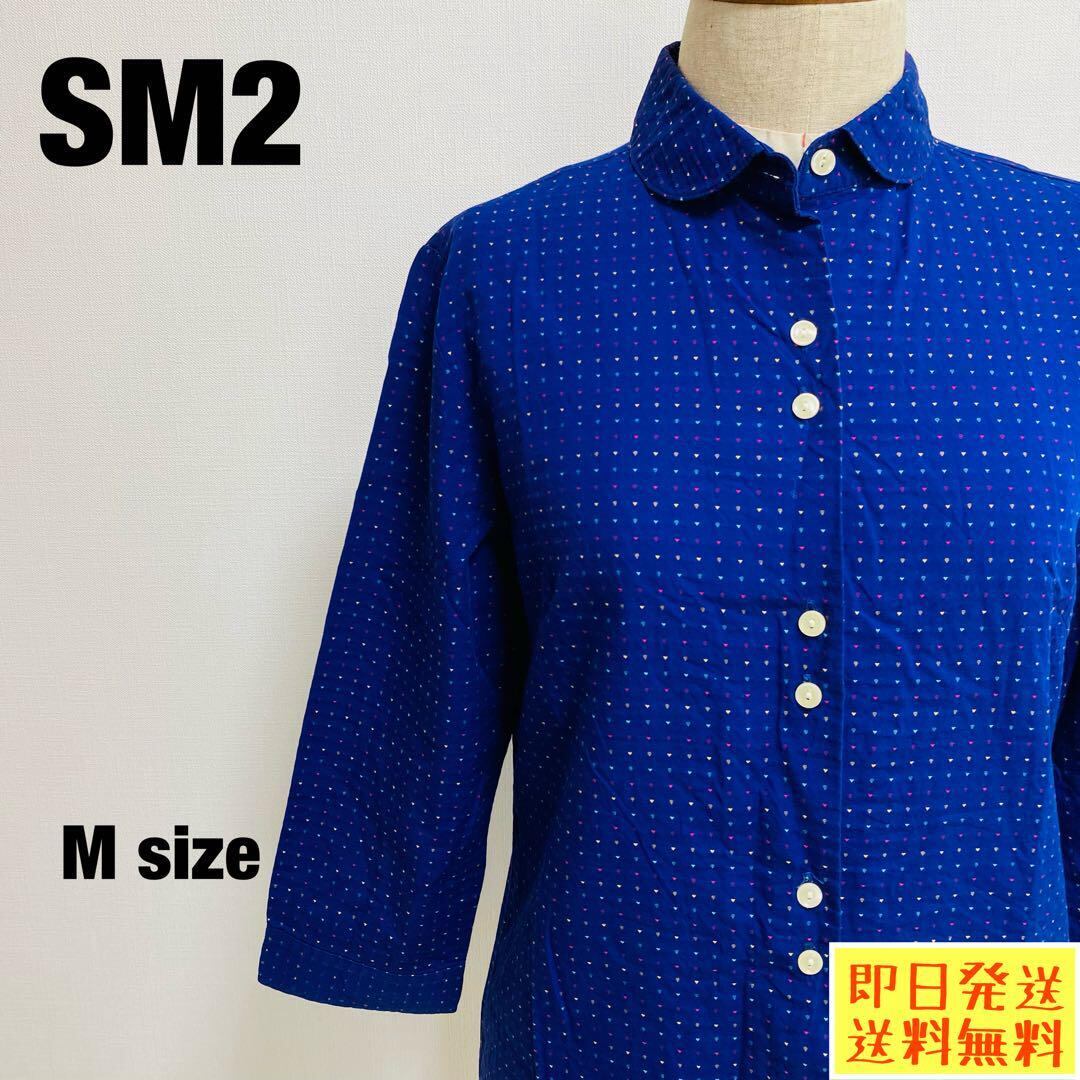 サマンサモスモス SM2 ネルシャツ 五分袖 ブルー ドット柄 M 1072