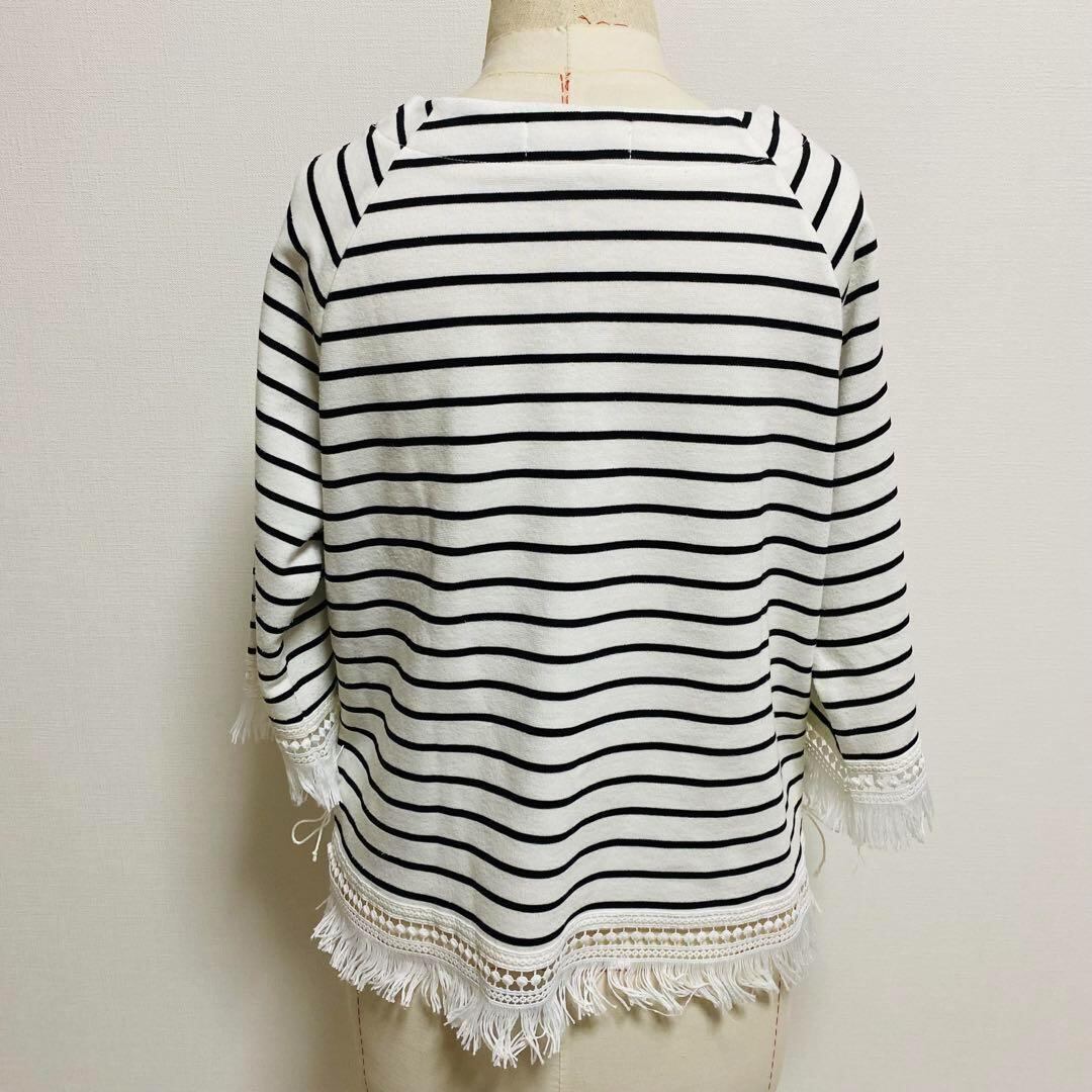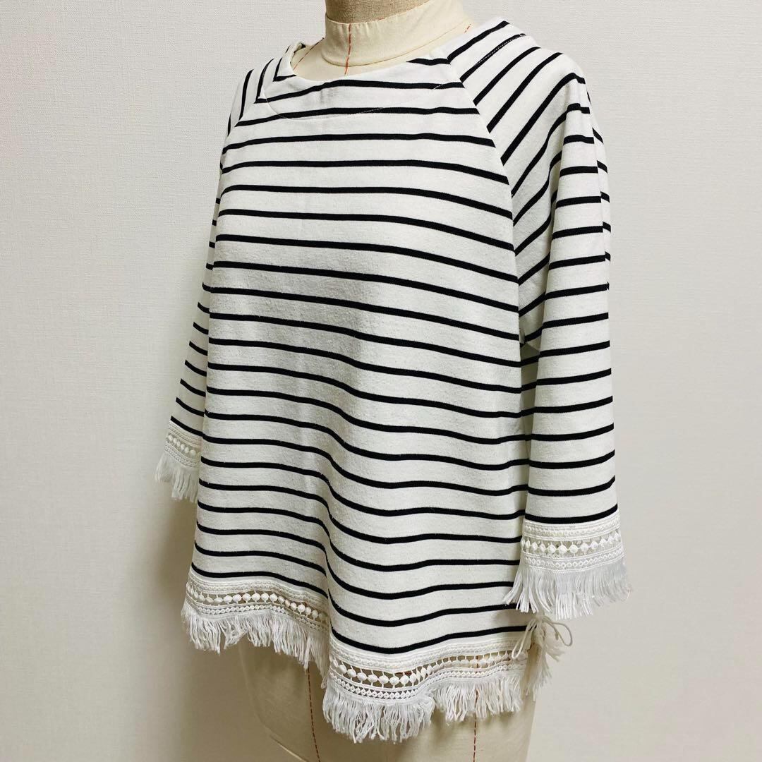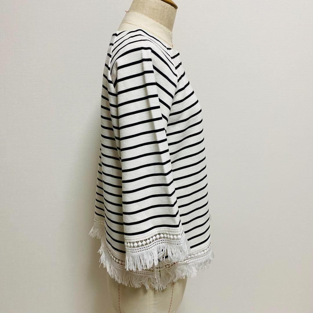 クチュールブローチ カットソー ストライプ フリル M 長袖 【946】