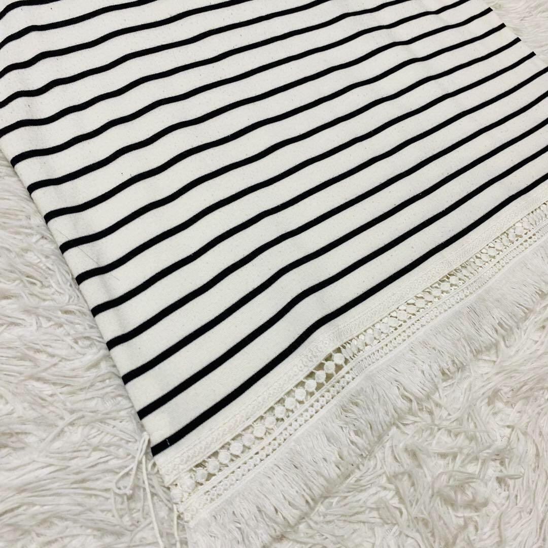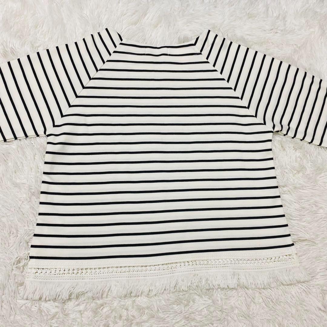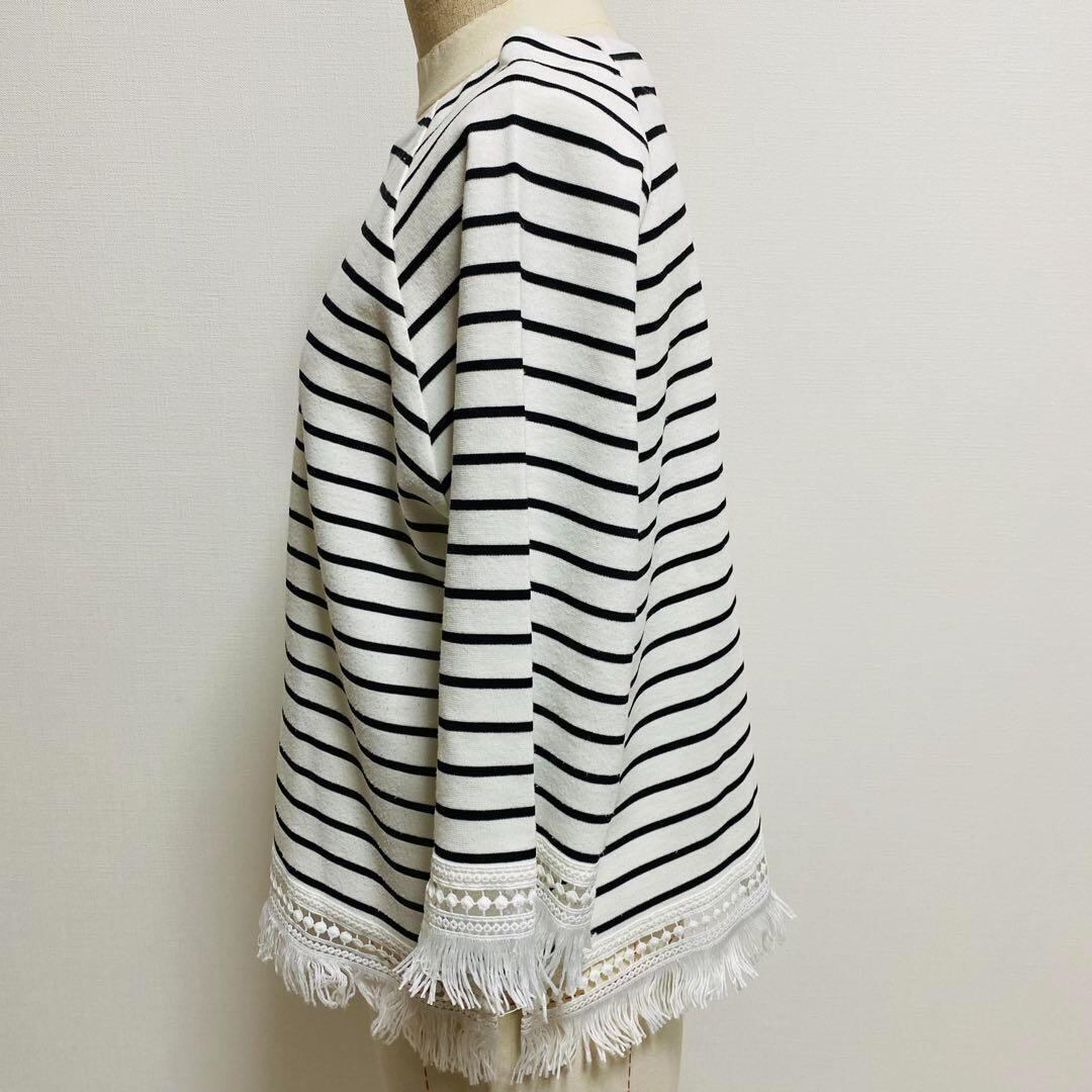 クチュールブローチ カットソー ストライプ フリル M 長袖 【946】