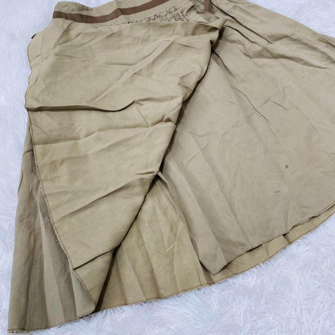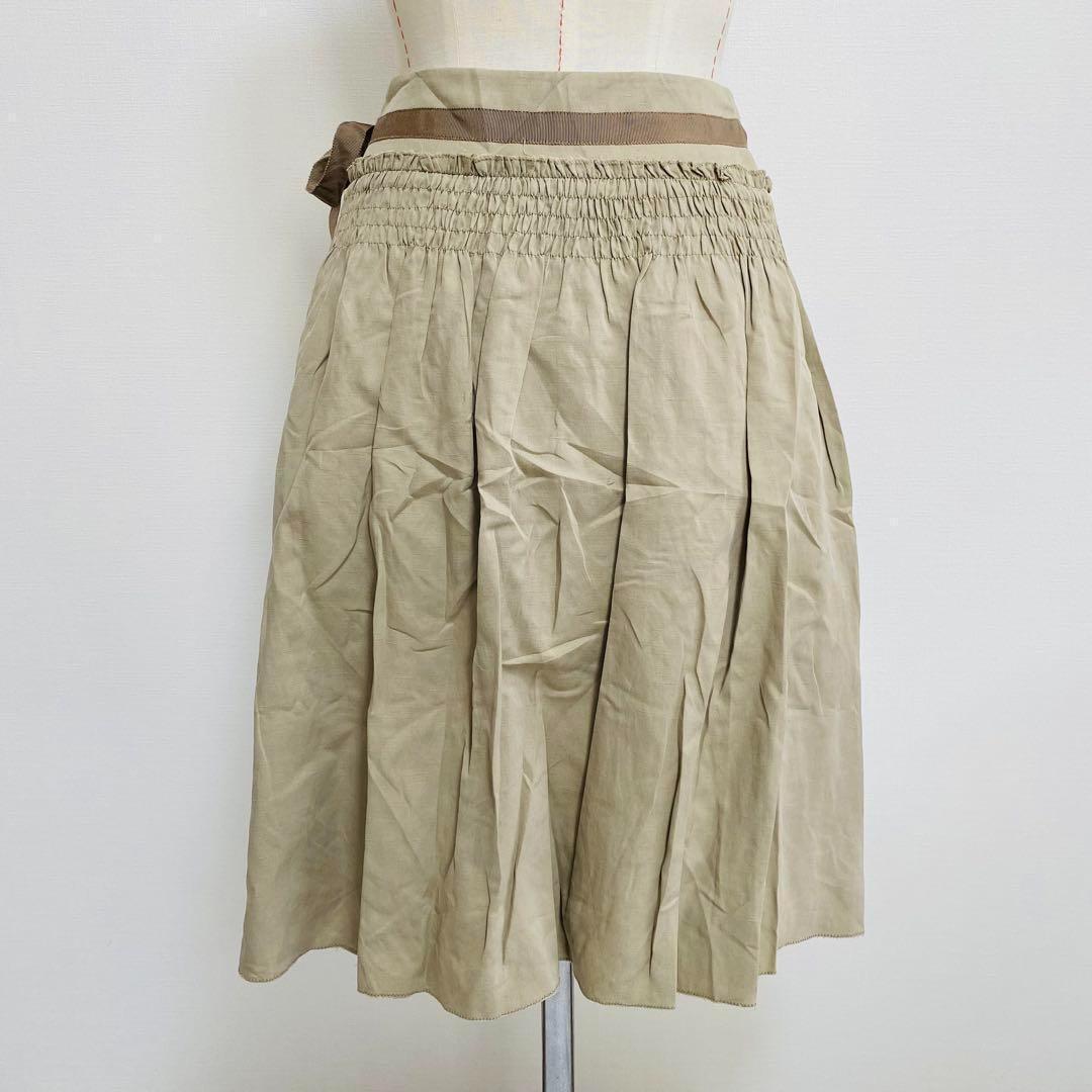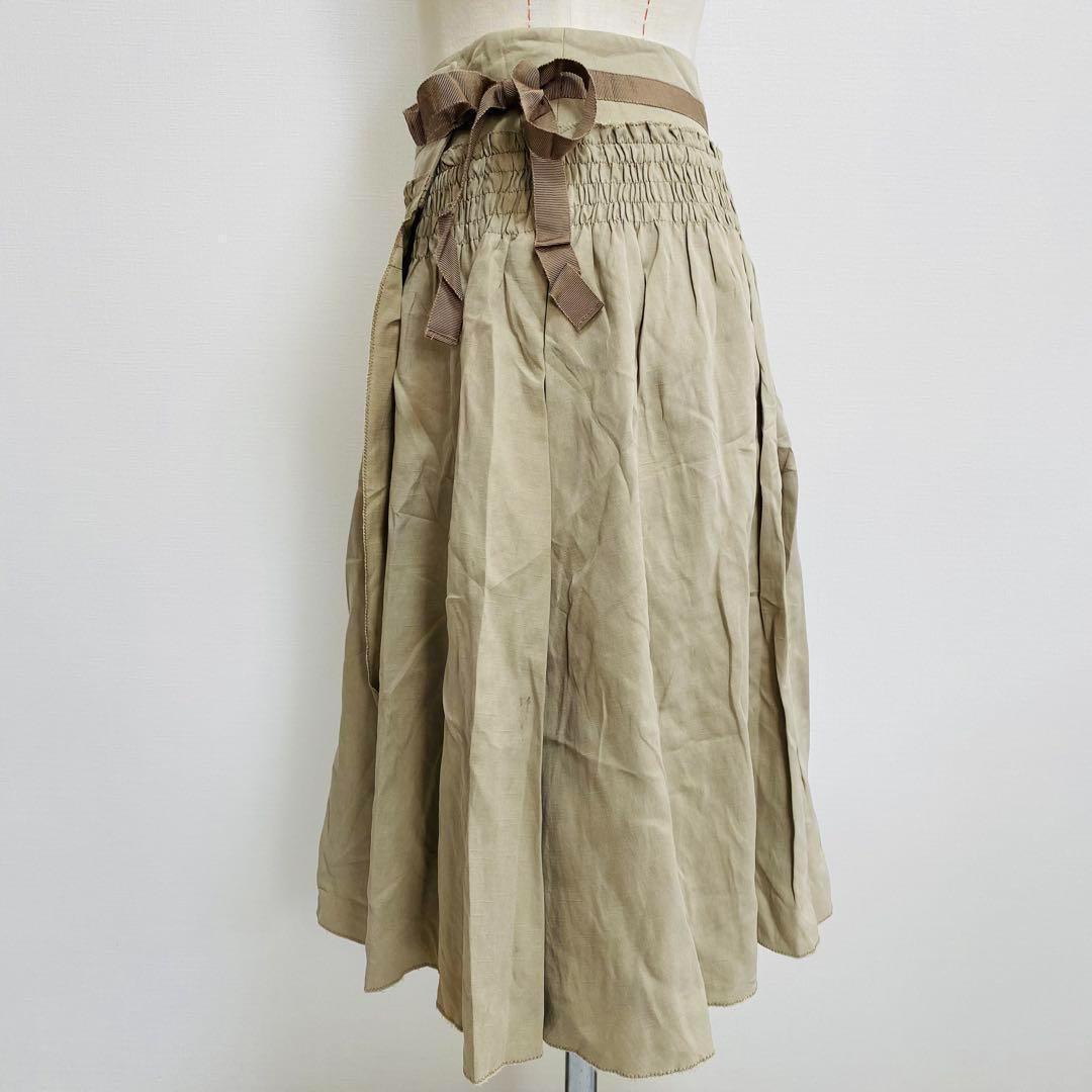 ボディドレッシング 膝丈スカート プリーツ ベージュ シルク フレア Sサイズ