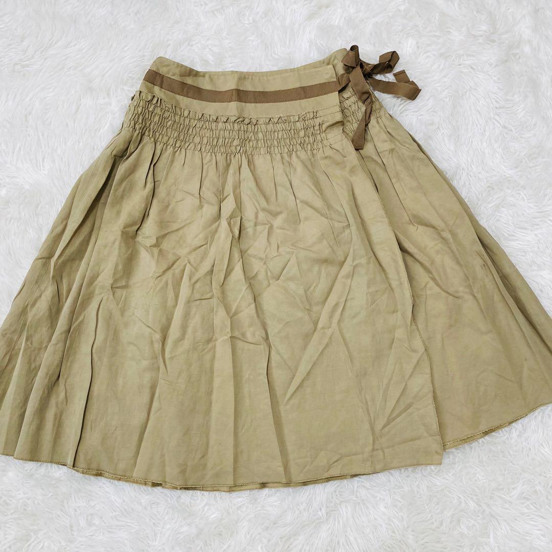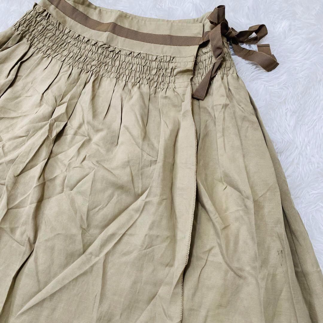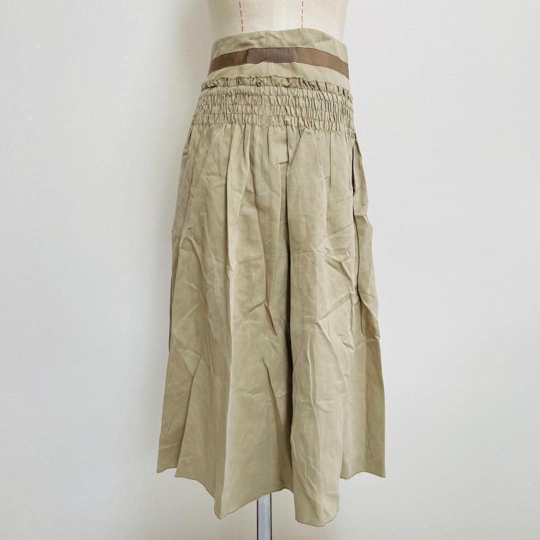ボディドレッシング 膝丈スカート プリーツ ベージュ シルク フレア Sサイズ