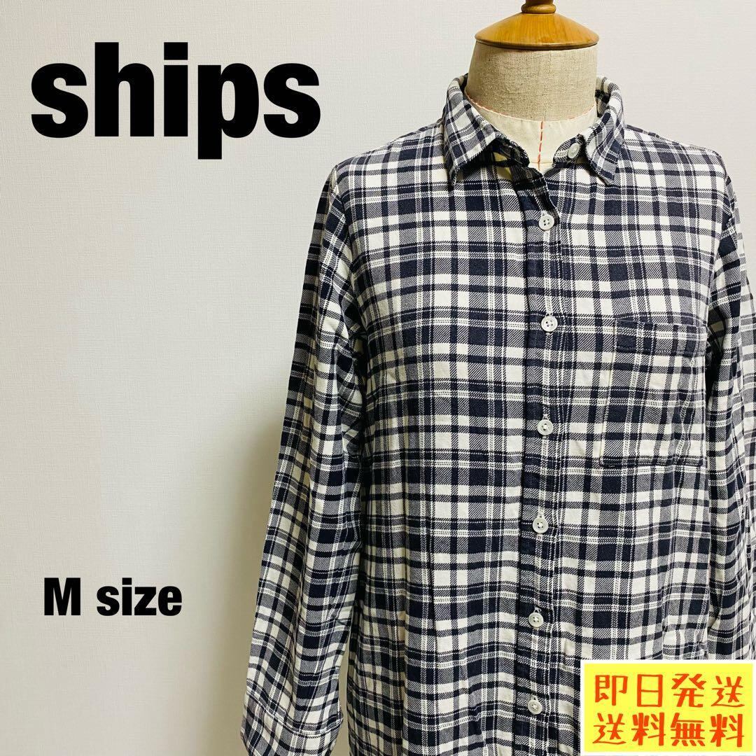 即日発送 シップス ships シャツ ロング丈 チェック柄 M 【1082】