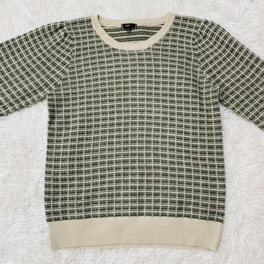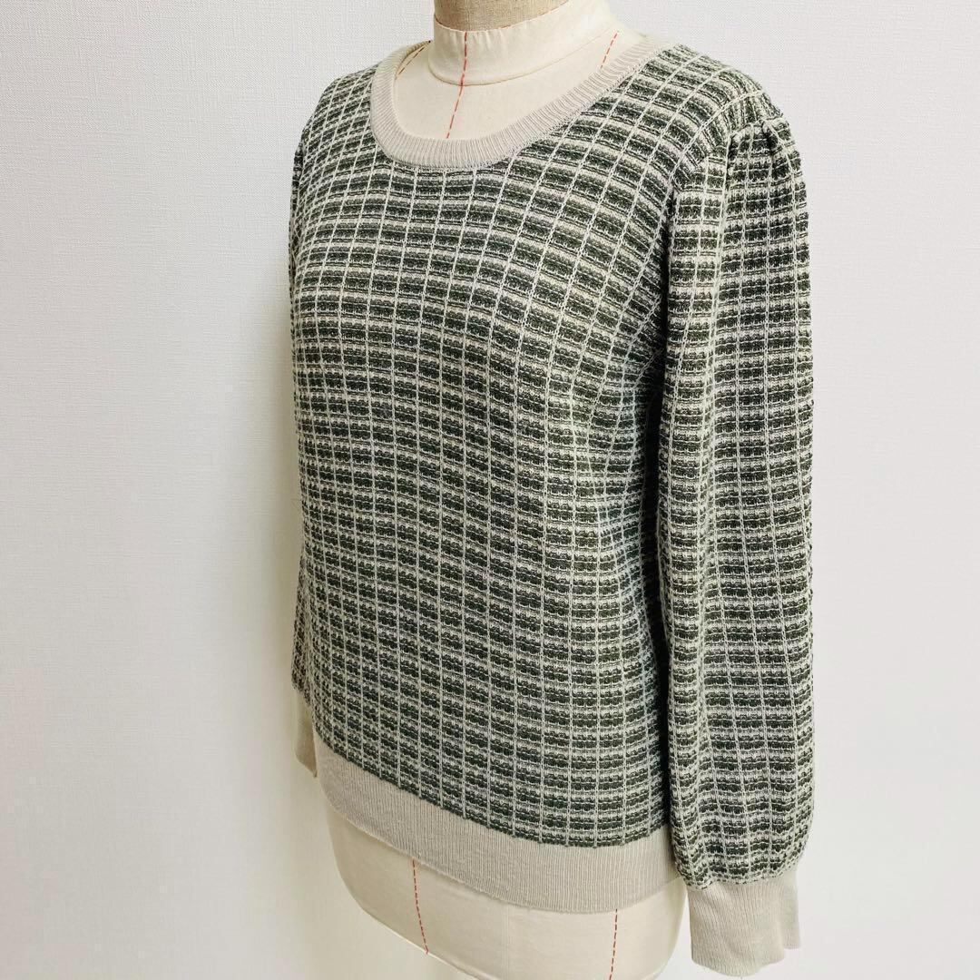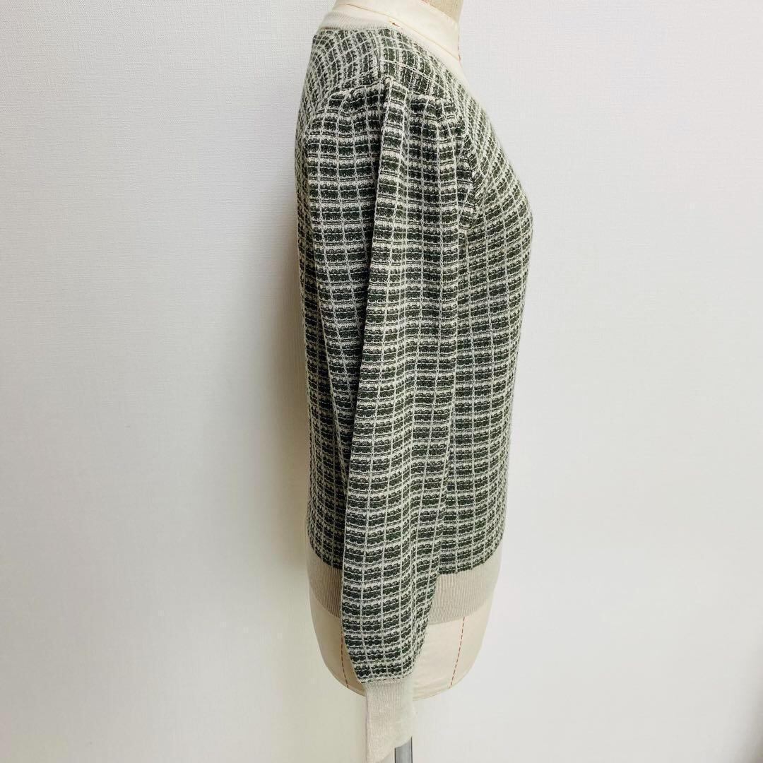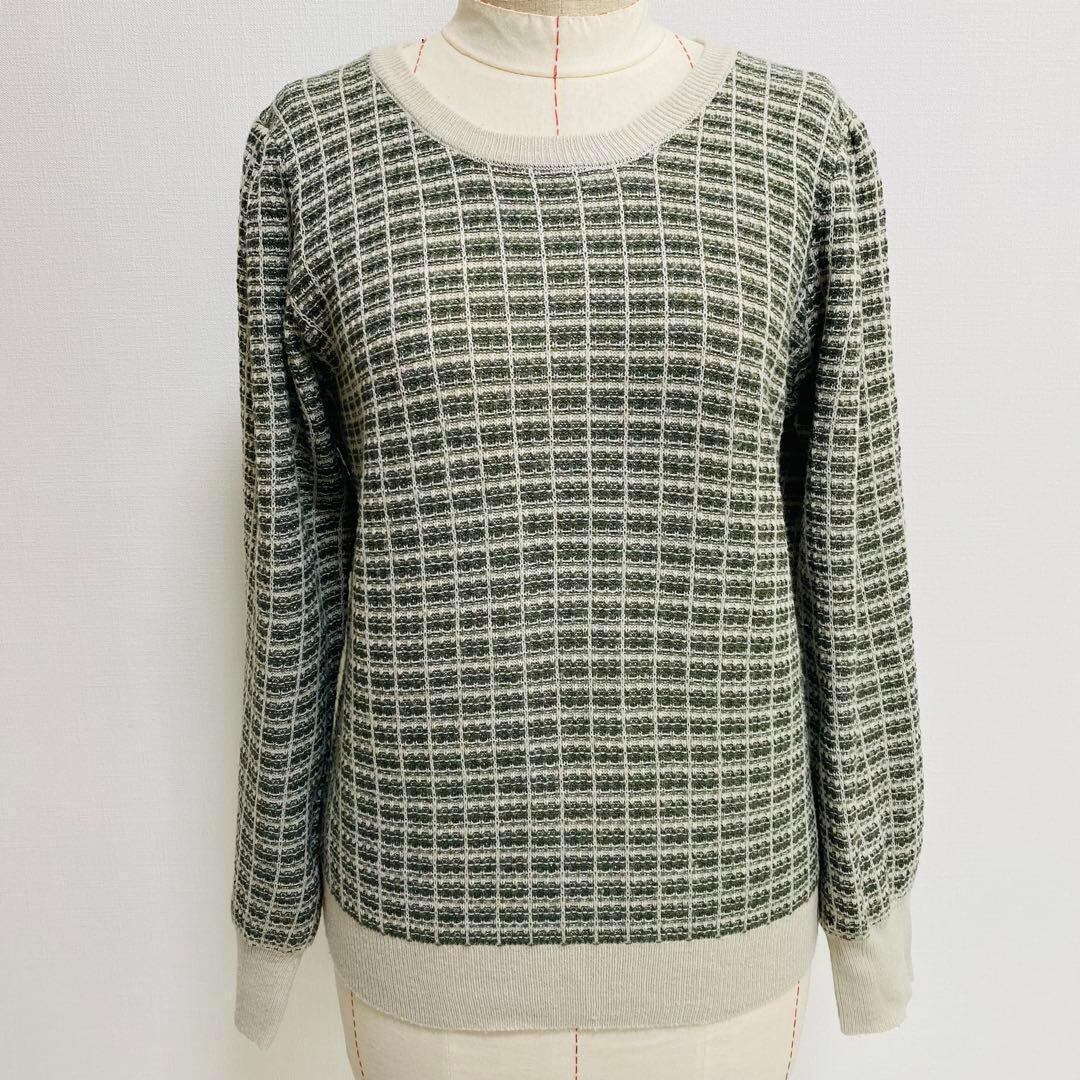 DHC ニット 長袖 グリーン 格子柄 レディース Mサイズ 美品 【982】
