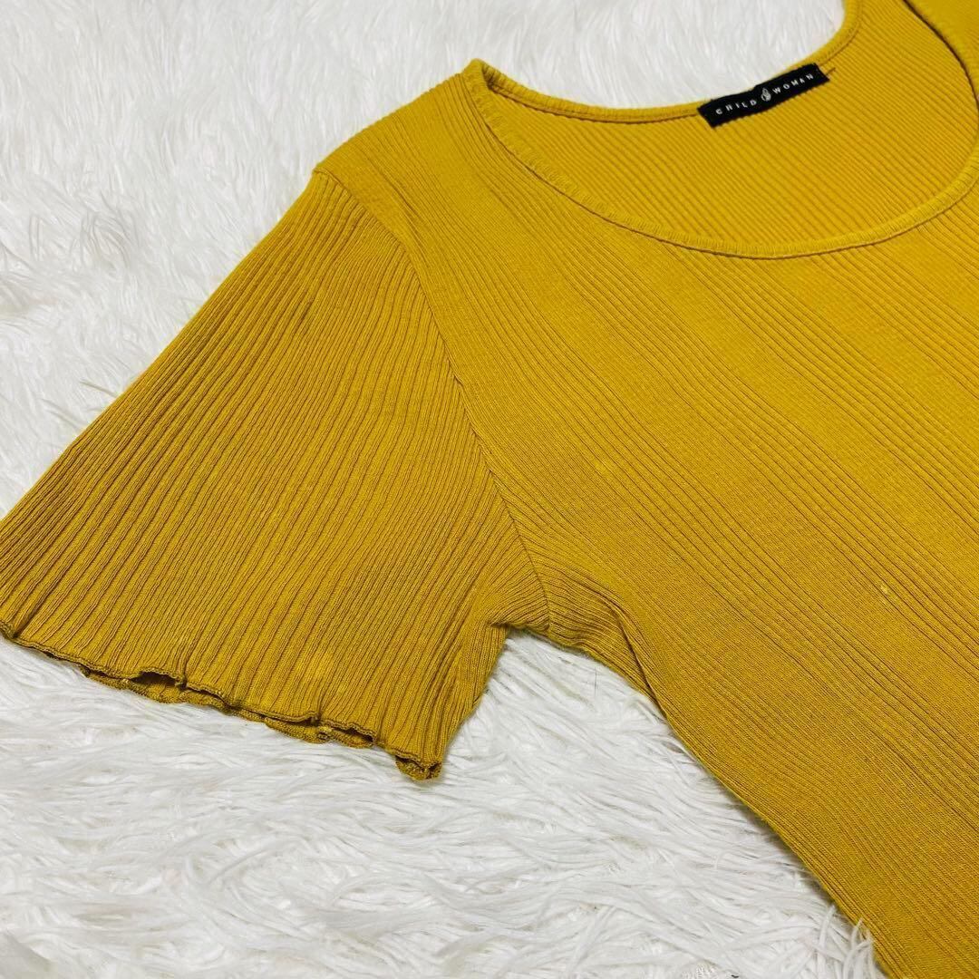 チャイルドウーマン ニット リブ編み 半袖 イエロー フリーサイズ 【950】
