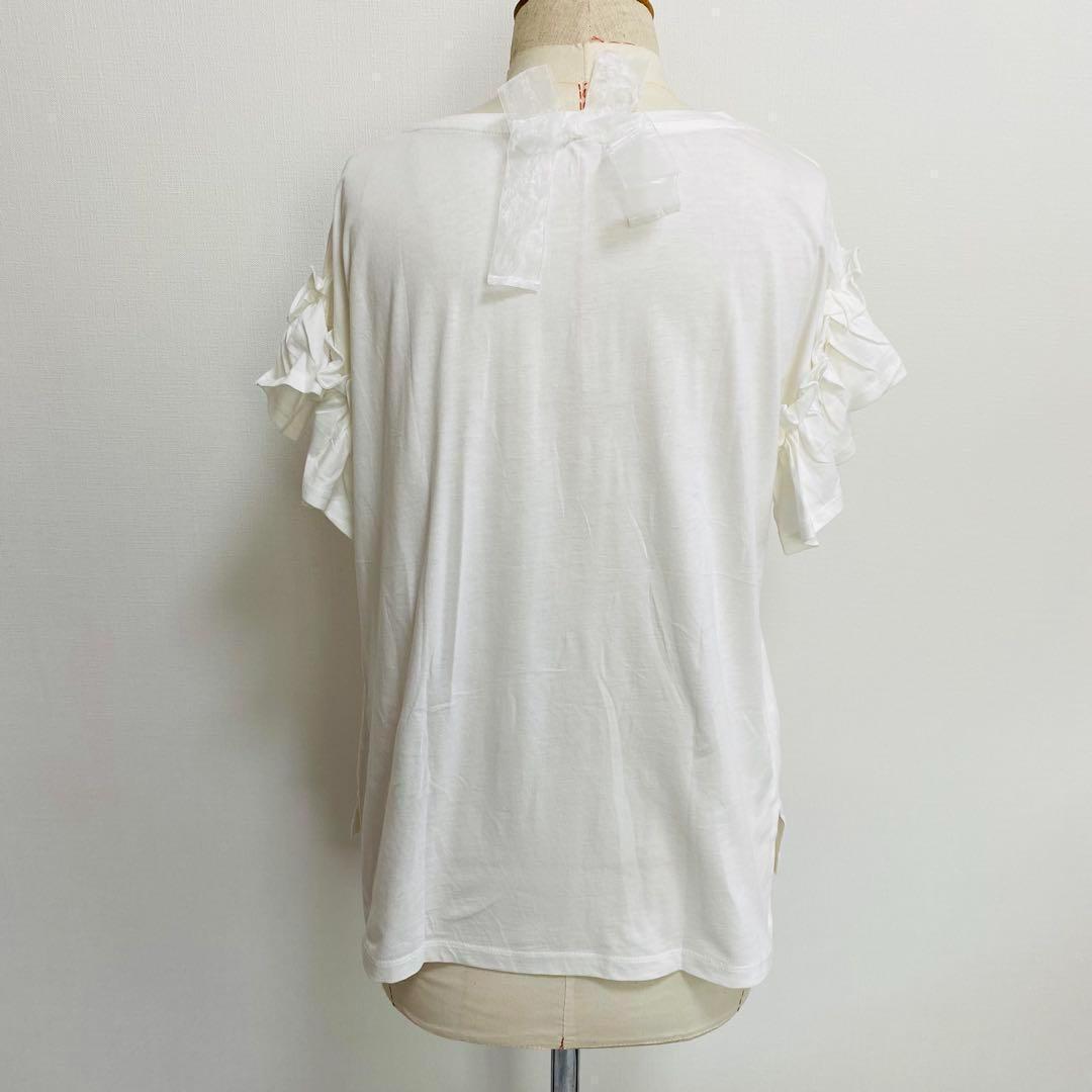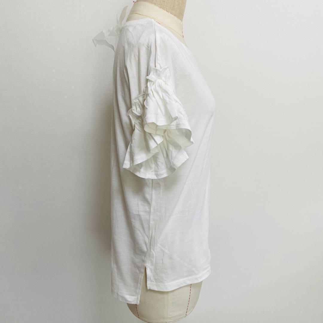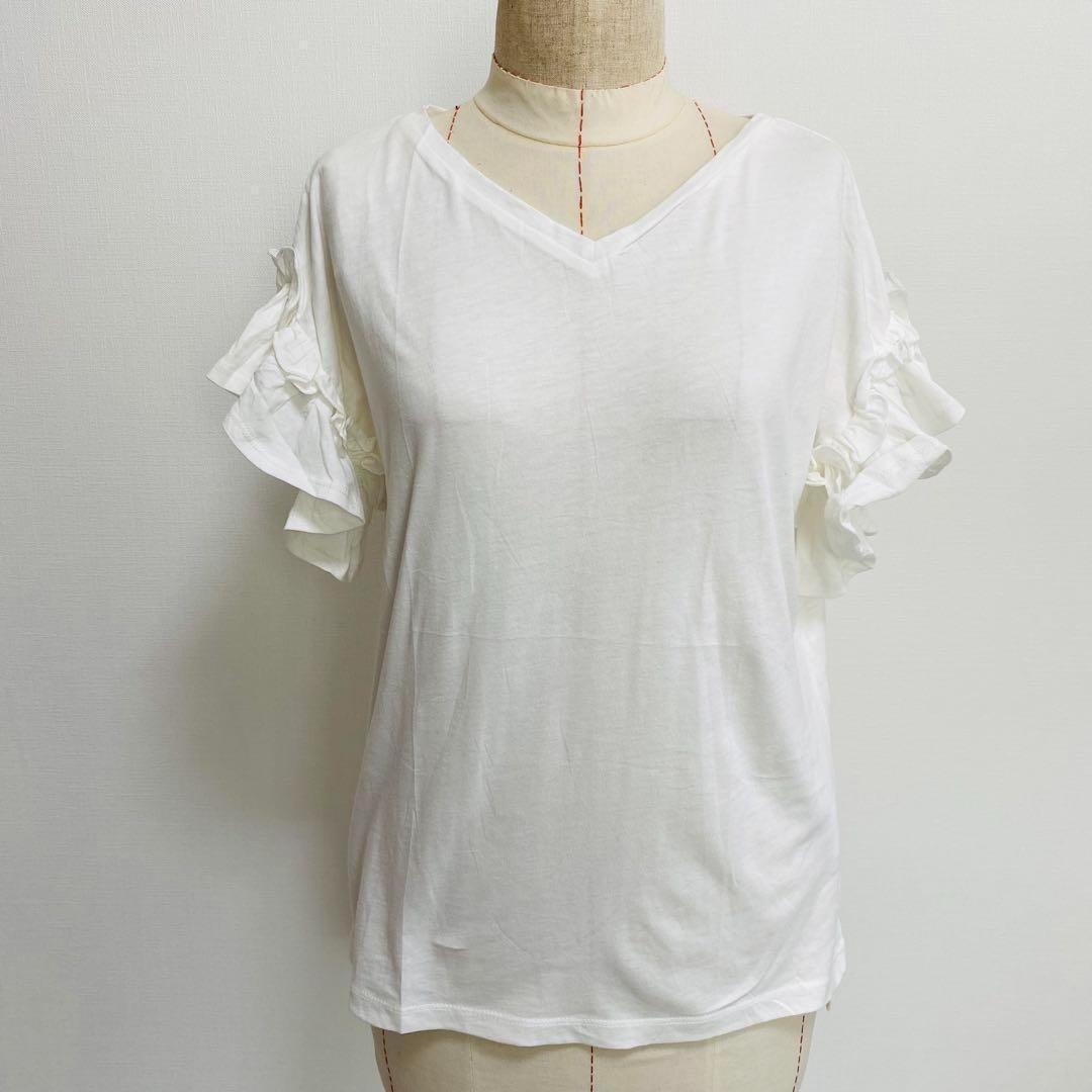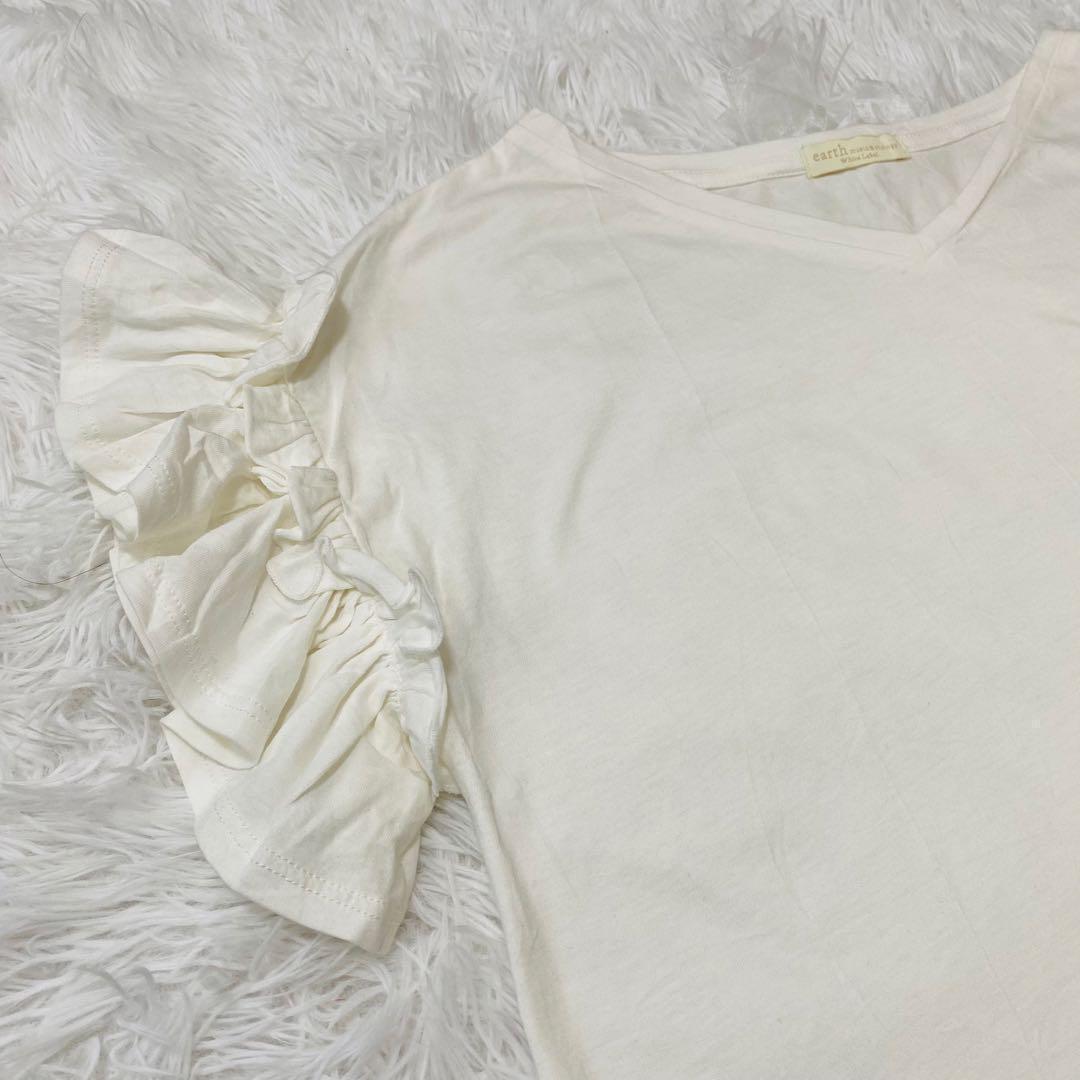 アース ミュージック&エコロジー カットソー ホワイト フリル袖 フリーサイズ