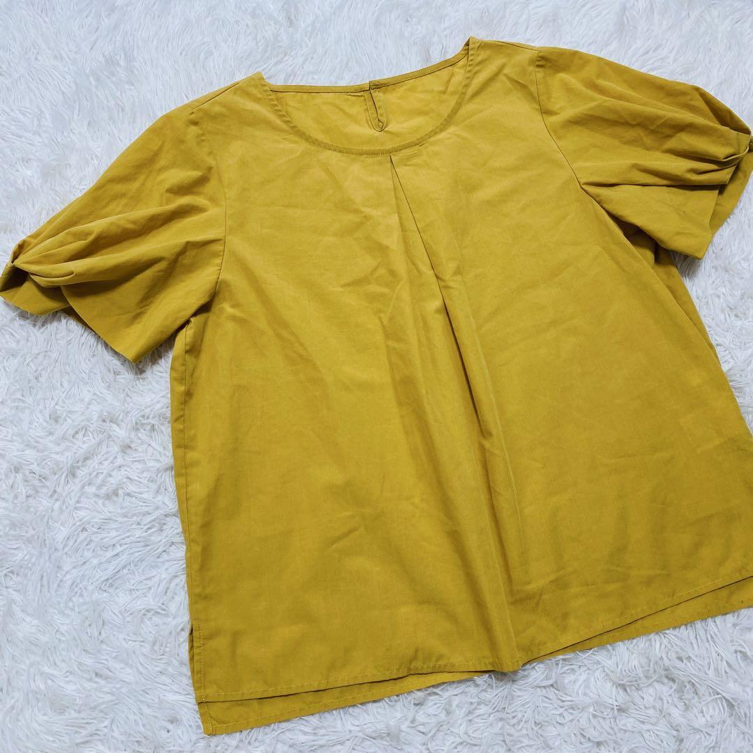 グローブ grove カットソー チュニック イエロー L プリーツ 1141