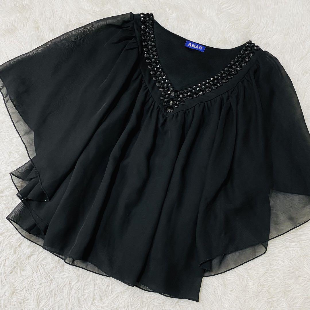 アナップ ANAP ブラウス レース フリル ブラック Mサイズ 1157