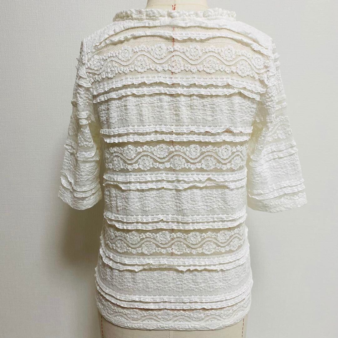 イーハイフン カットソー レース ストライプ ホワイト Mサイズ 1166