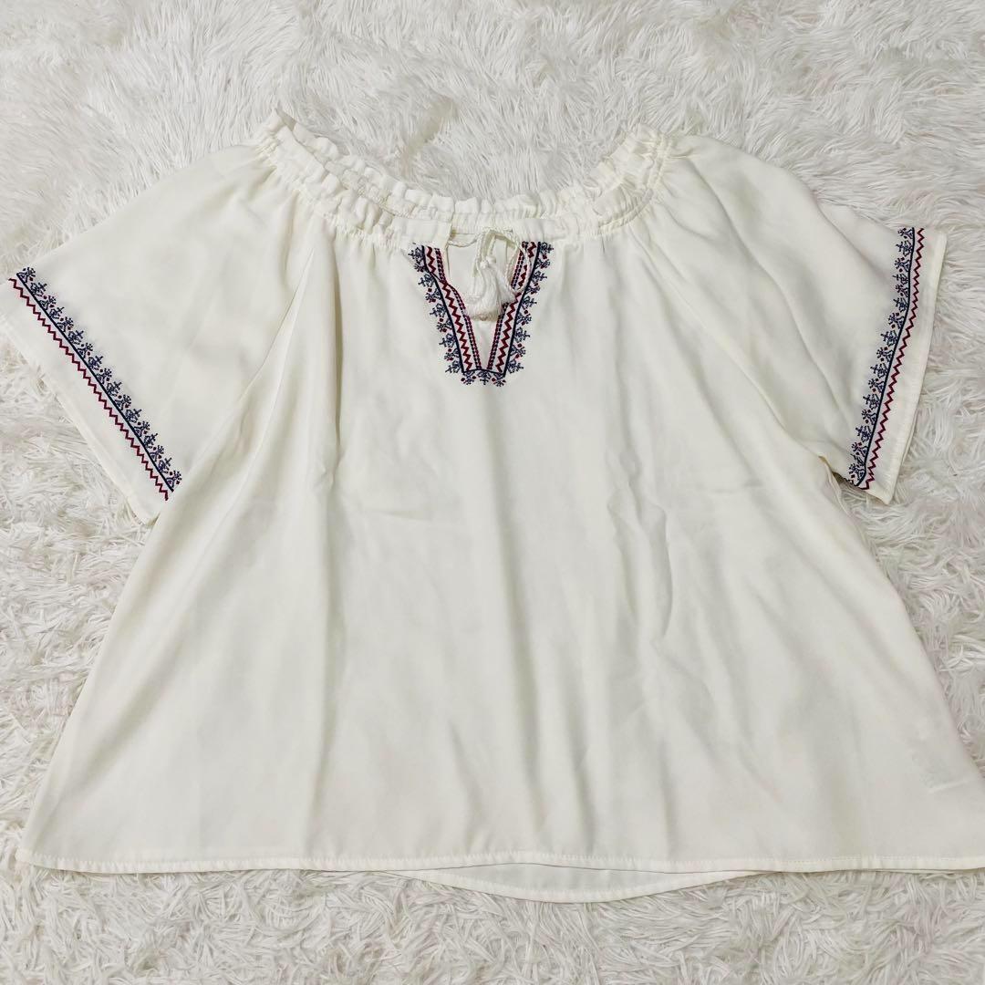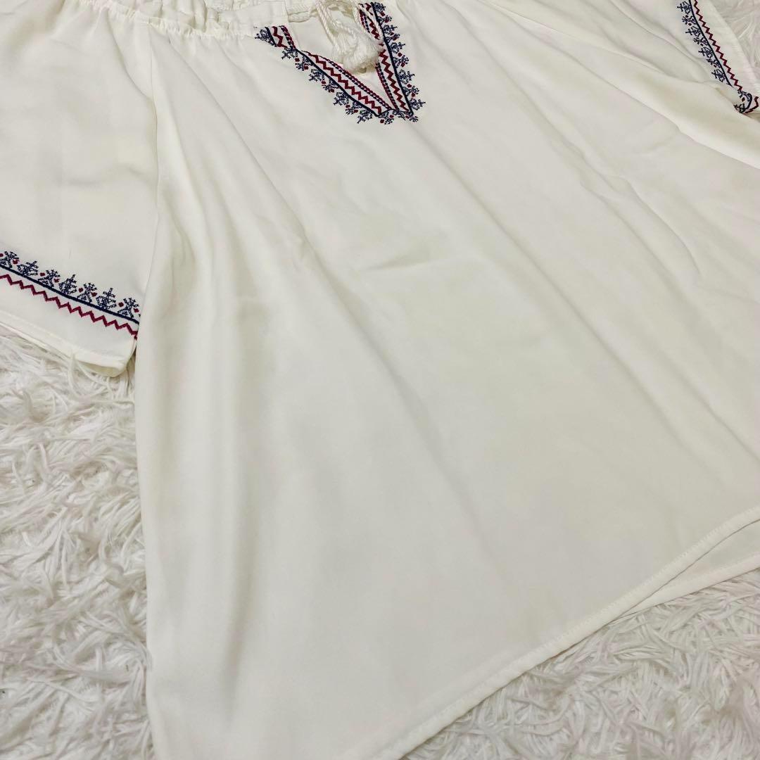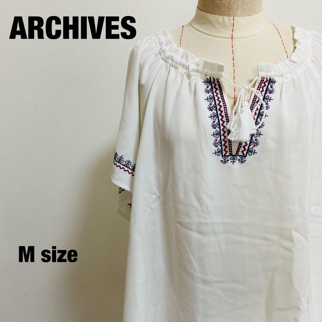 アルシーヴ ARCHIVES チュニック 刺繍 半袖 M ホワイト Vネック
