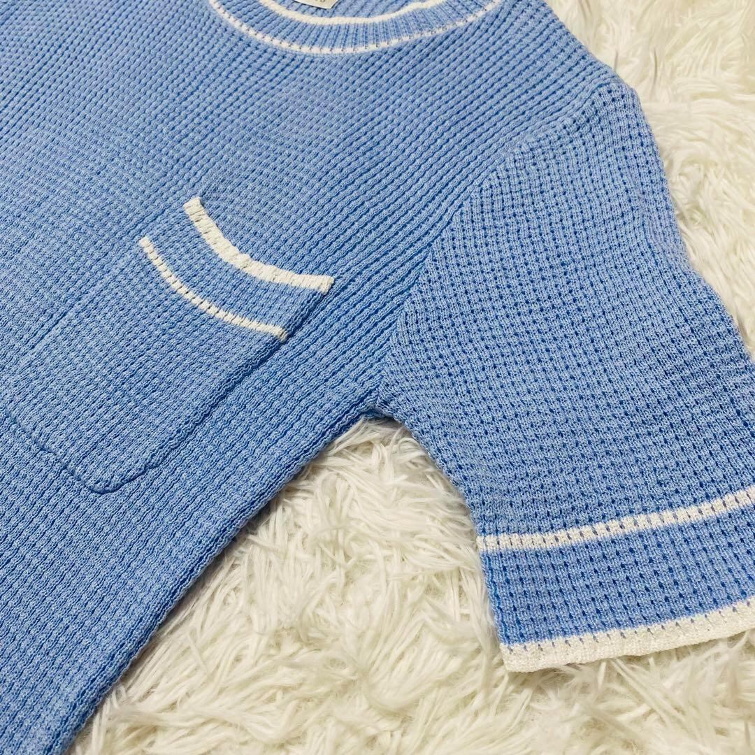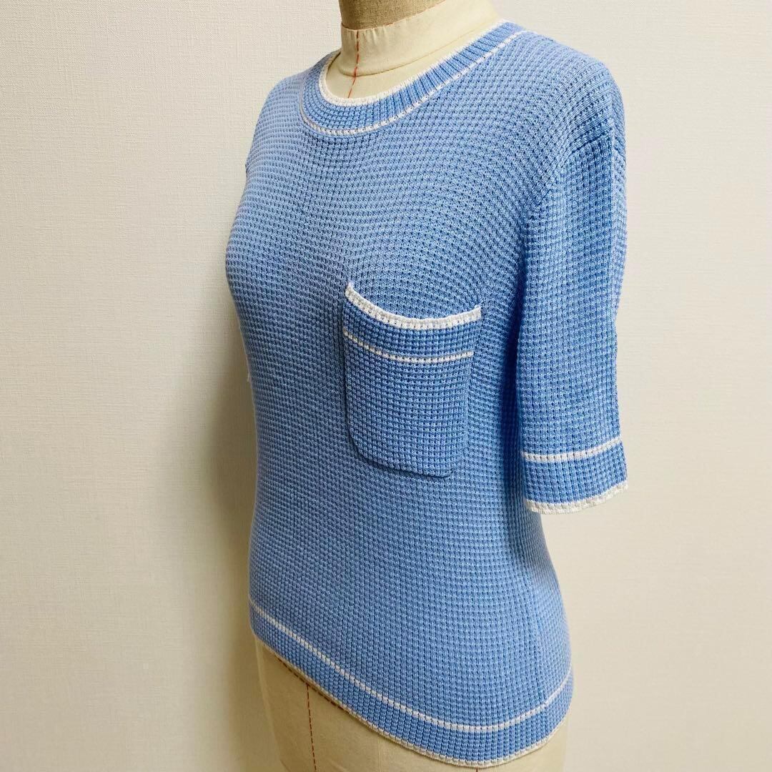 アビトーキョー ABITOKYO ニット ブルー 五分袖 フリーサイズ【980】