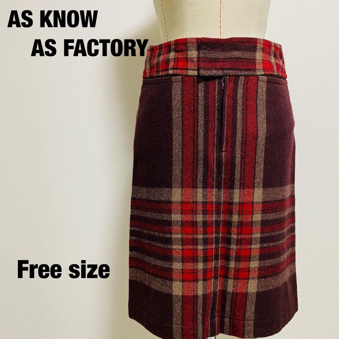 アズノウ AS KNOW チェック柄タイトスカート ひざ丈 秋冬 フリーサイズ