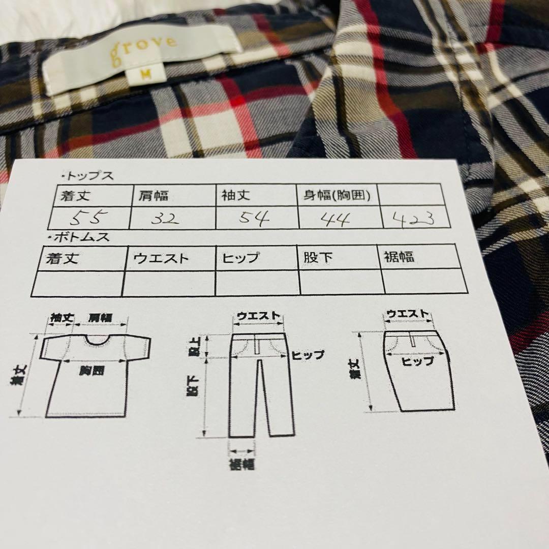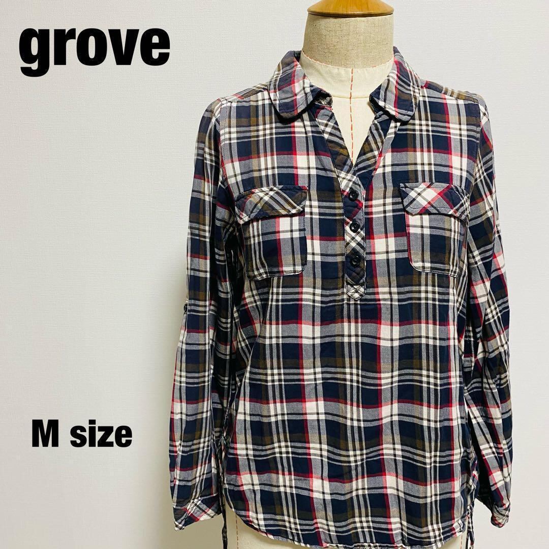 グローブ grove 長袖シャツ チェック柄 ボタン付き Mサイズ 【423】