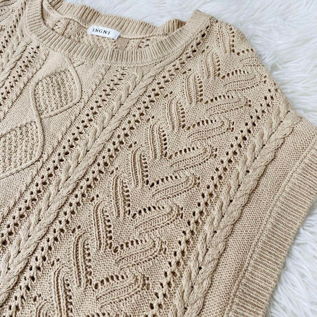 イング NGNI ニット ベスト レディース ケーブル編み Mサイズ 1245