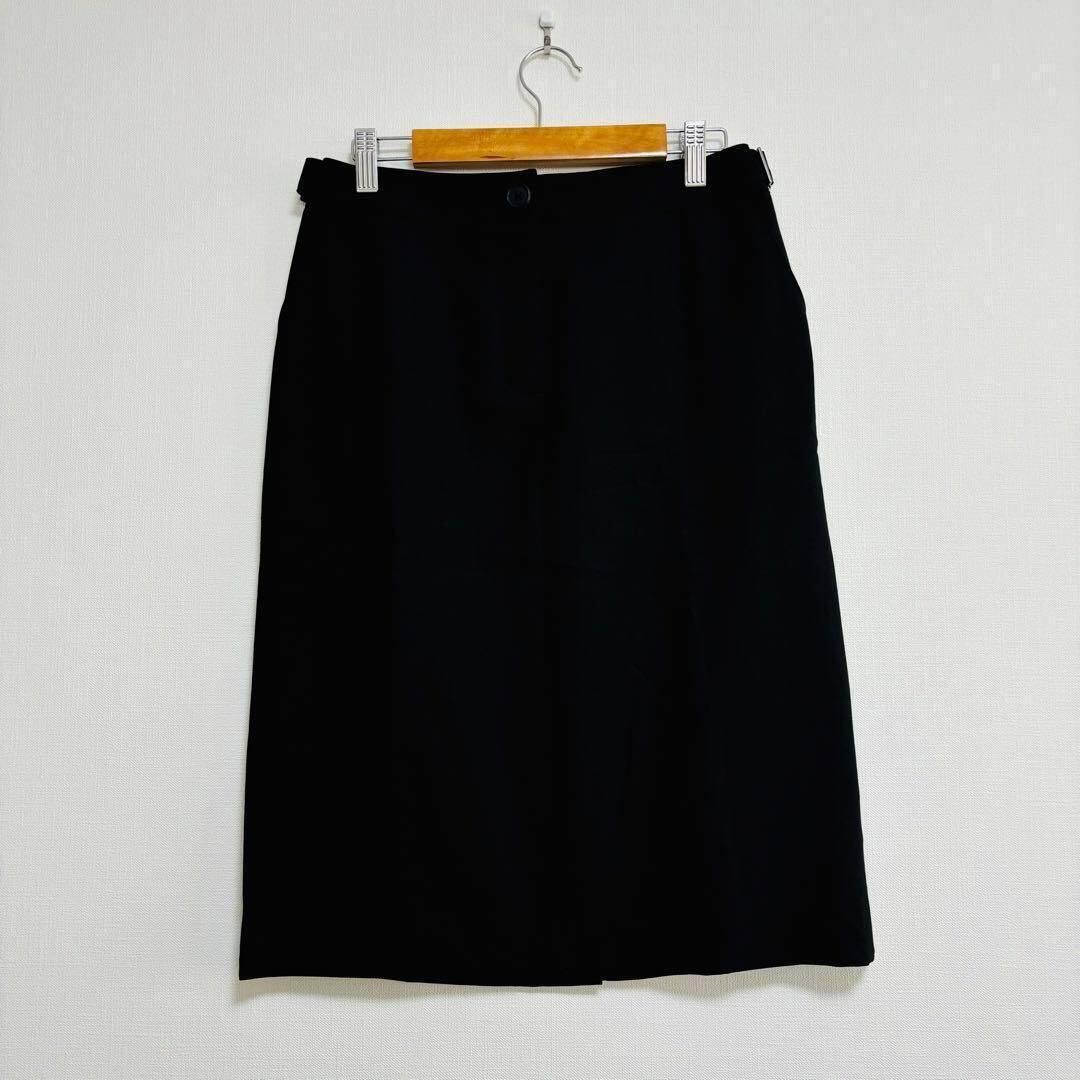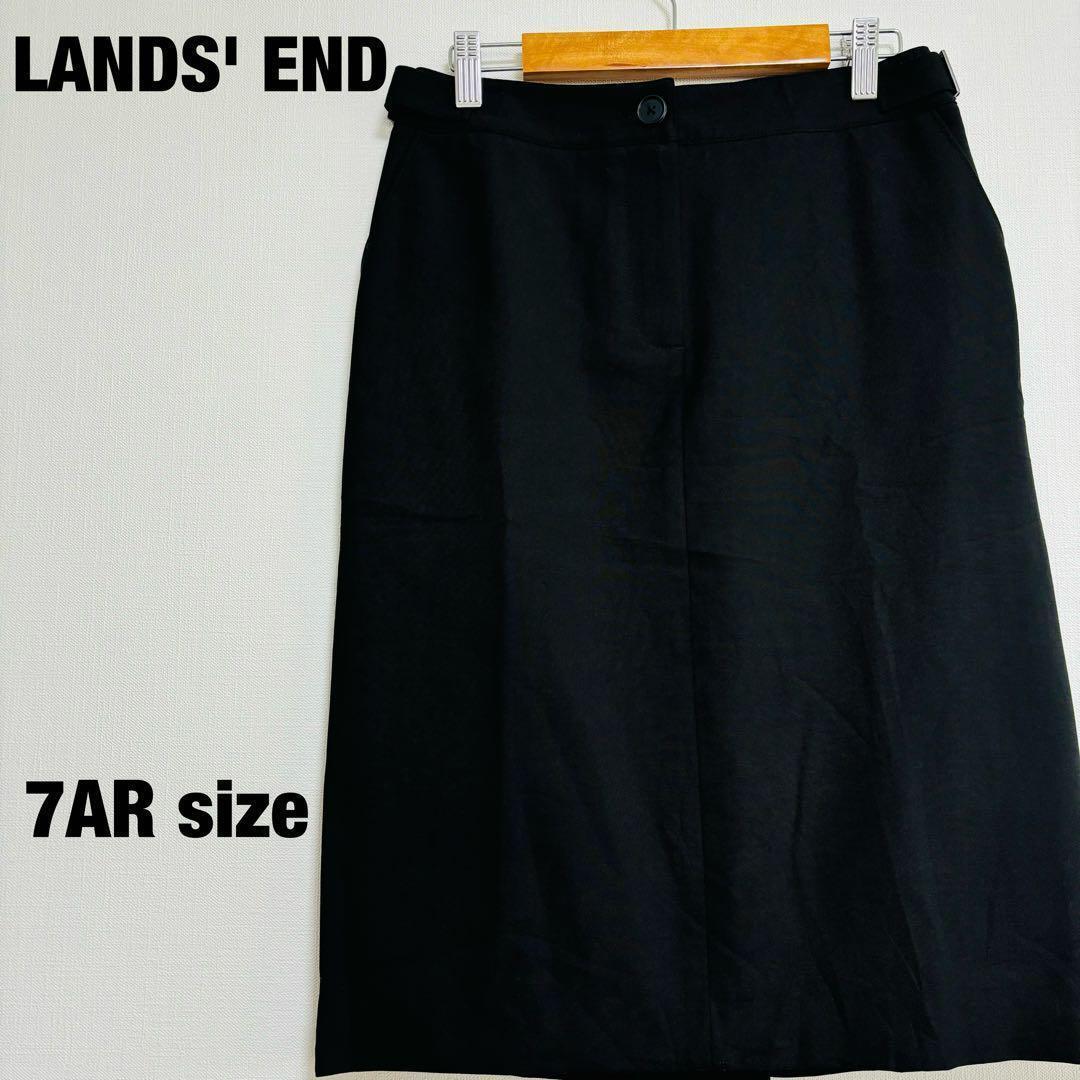 ランズエンド LandsEnd ひざ丈スカート 黒 サイドジップ バックスリット
