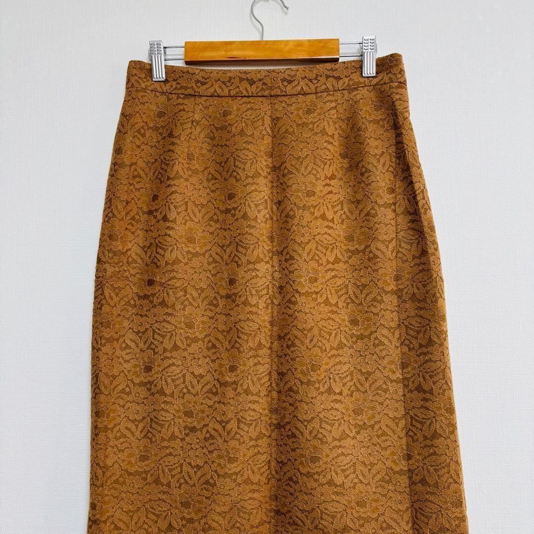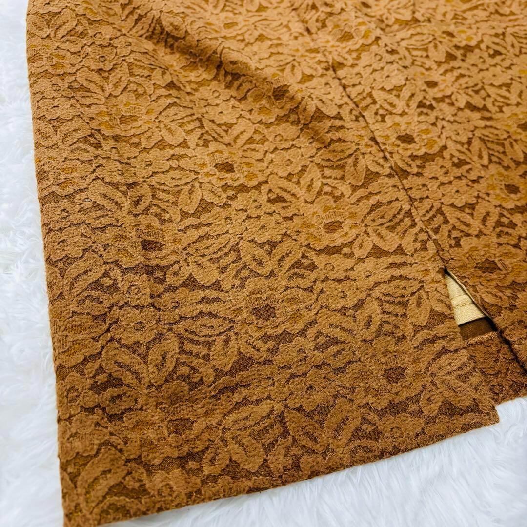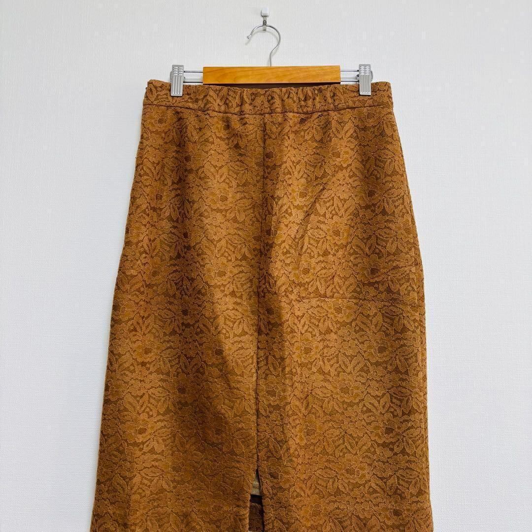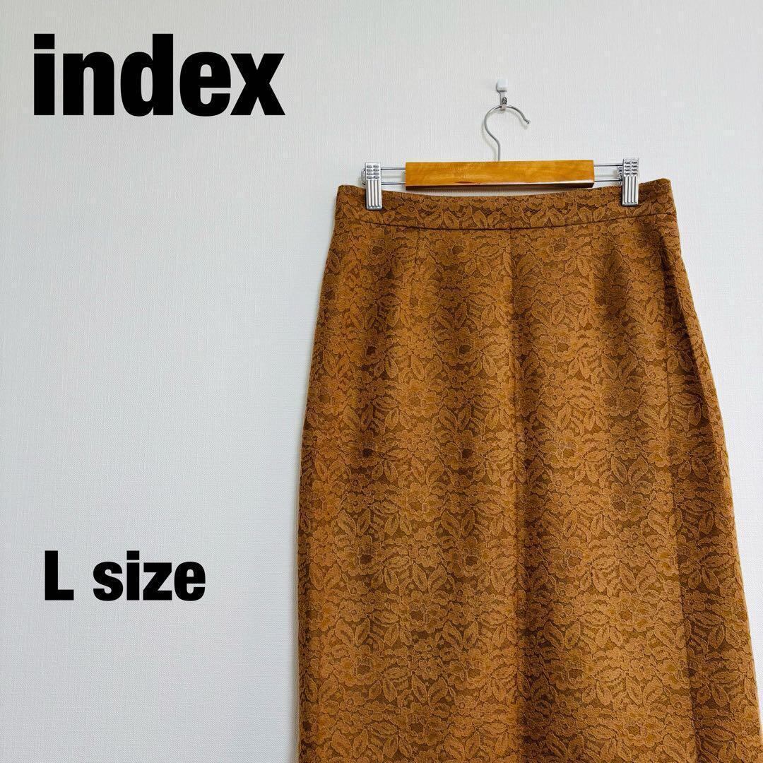 インデックス タイトスカート ひざ丈 ボタニカル 花柄 ブラウン L 190
