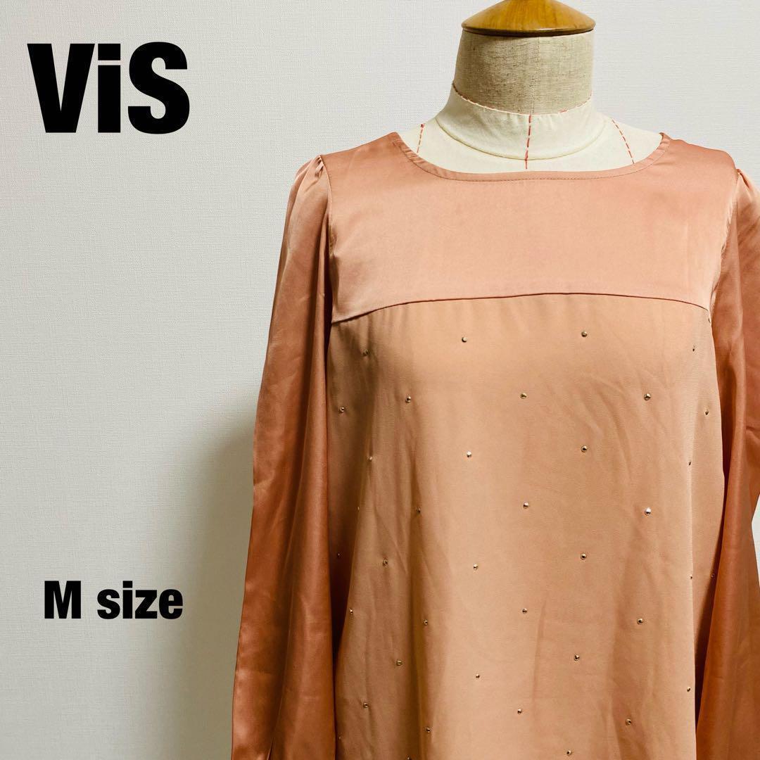 ビス ViS カットソー ビジュー 長袖 Mサイズ オフィス カジュアル ピンク