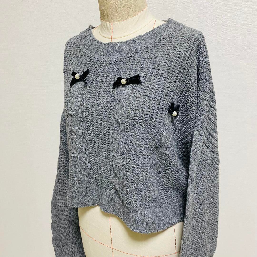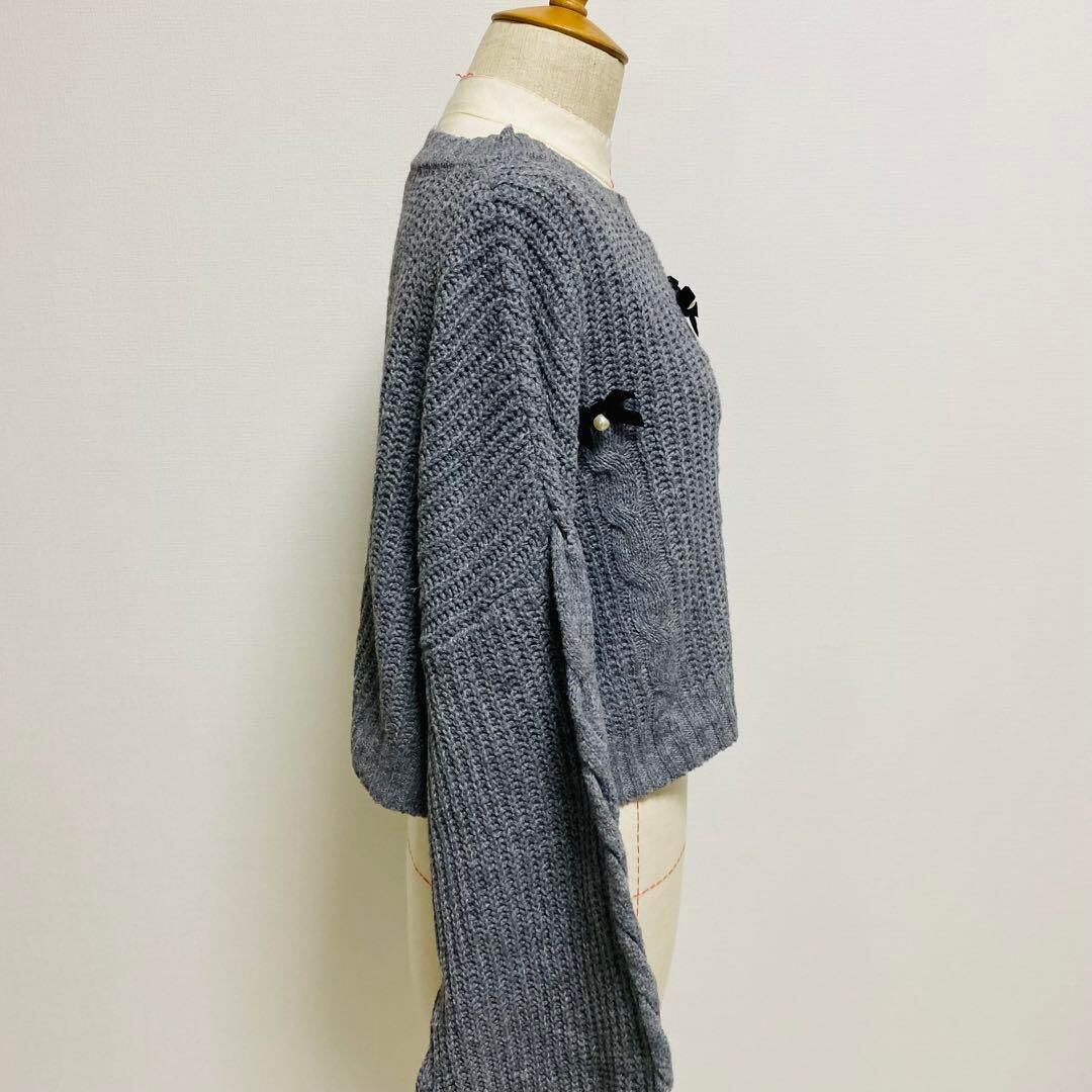 リヴィエッタ しまむら ニット グレー ショート丈 ケーブル編み M 1296