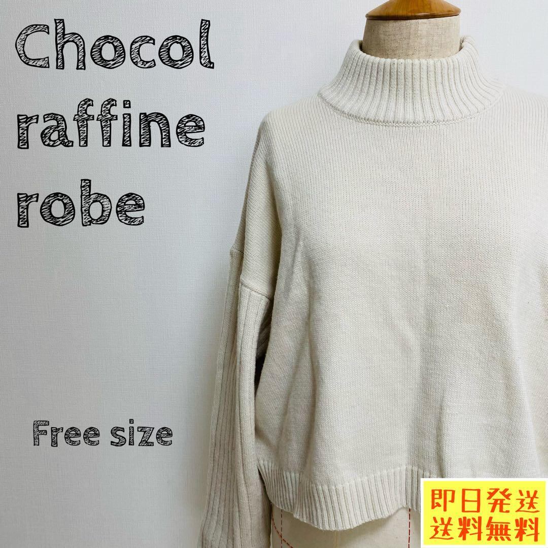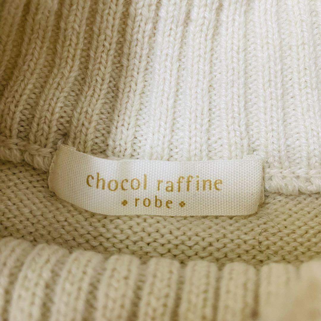 ショコラフィネローブ ニット アイボリー リブ タートルネック 1308