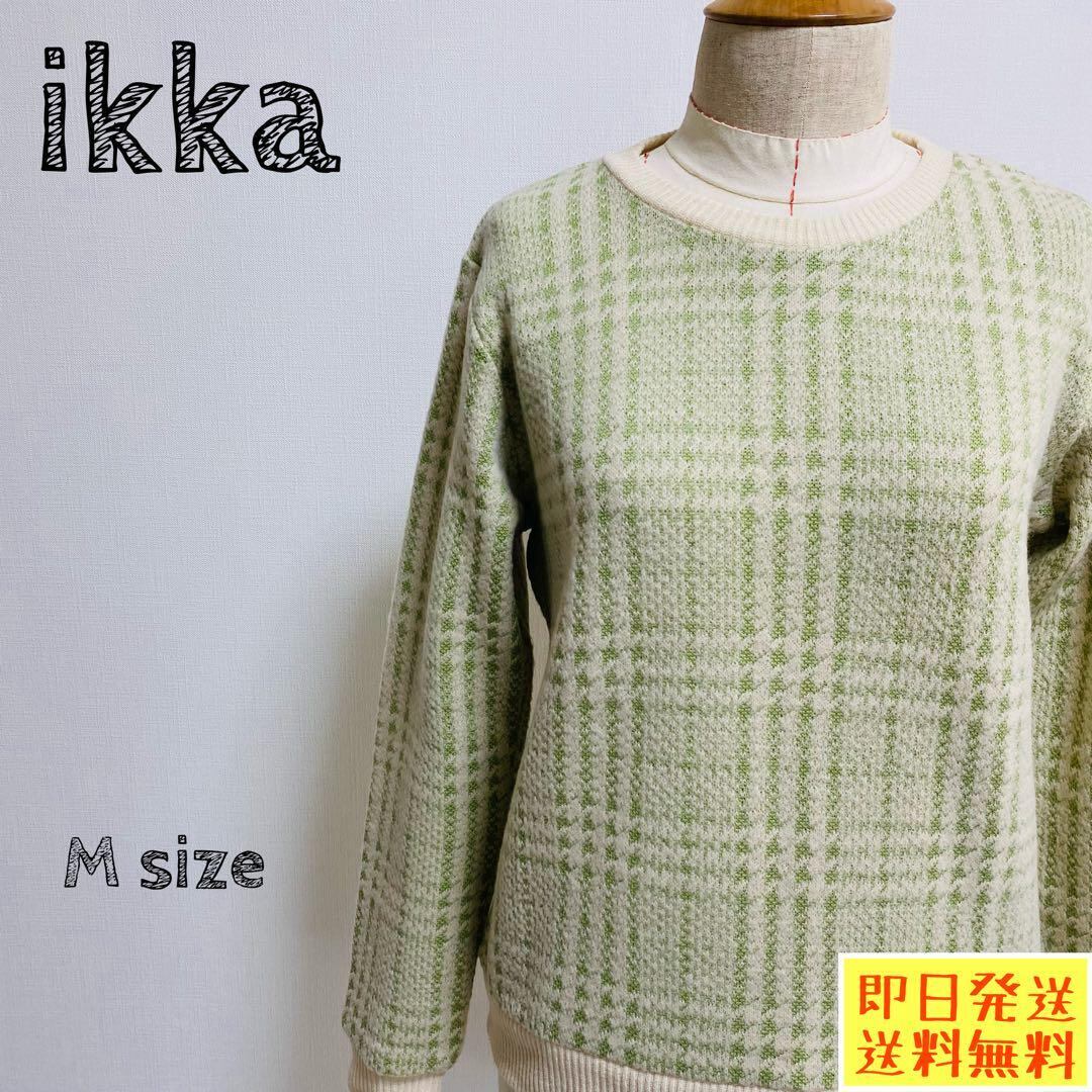 イッカ ikka ニット グリーン チェック 千鳥格子 Mサイズ 1313