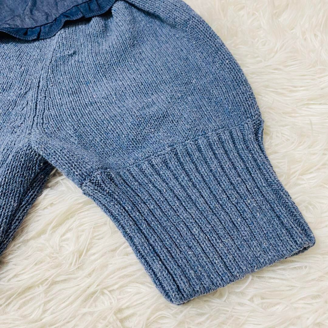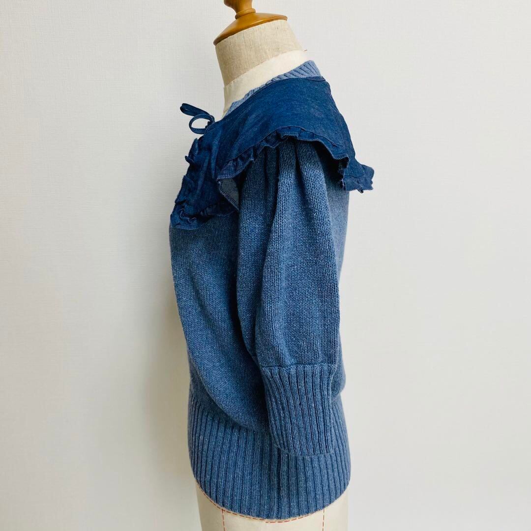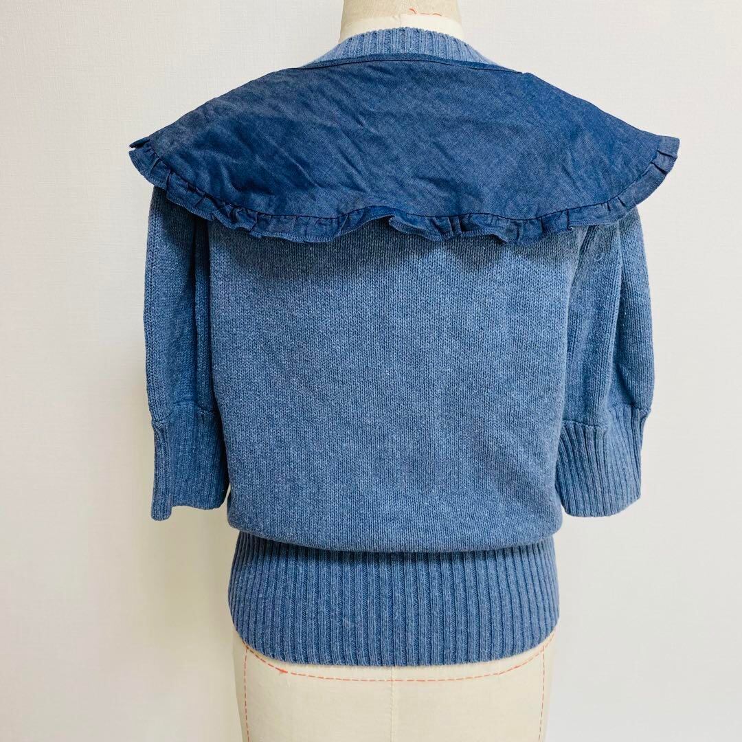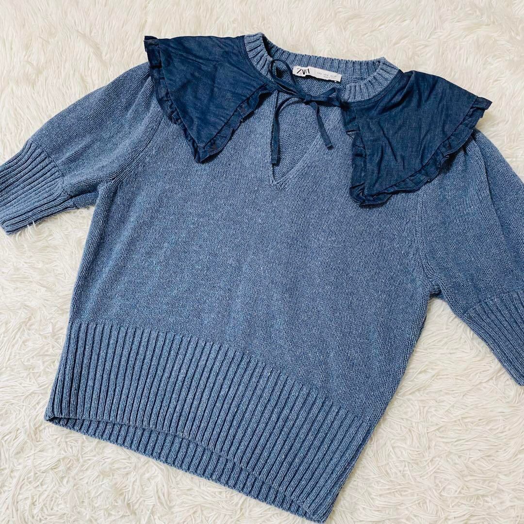 ザラ ZARA ニット フリル Vネック デニムカラー ビッグ襟 L 1326