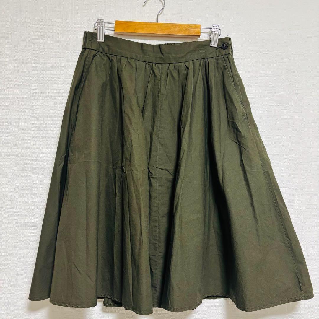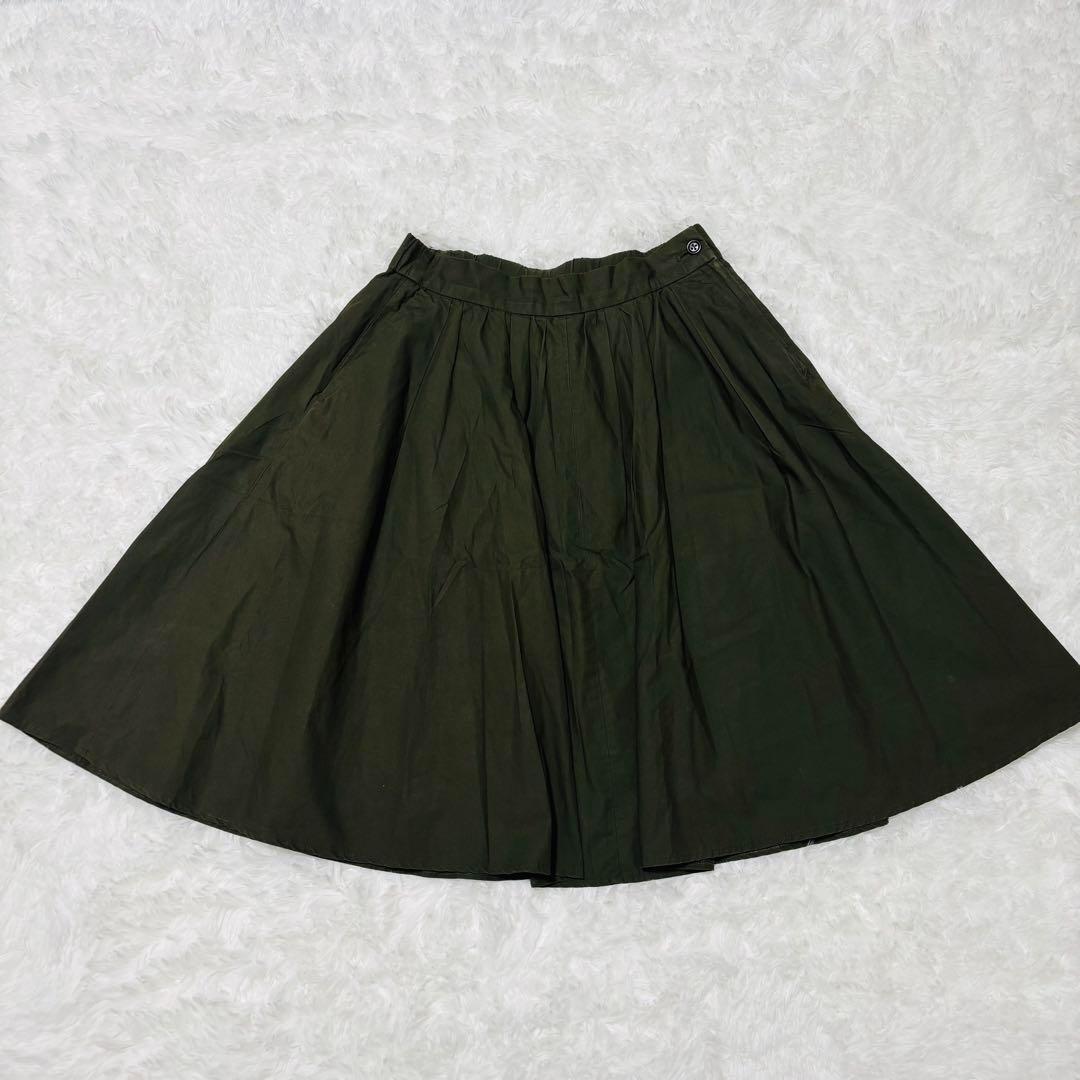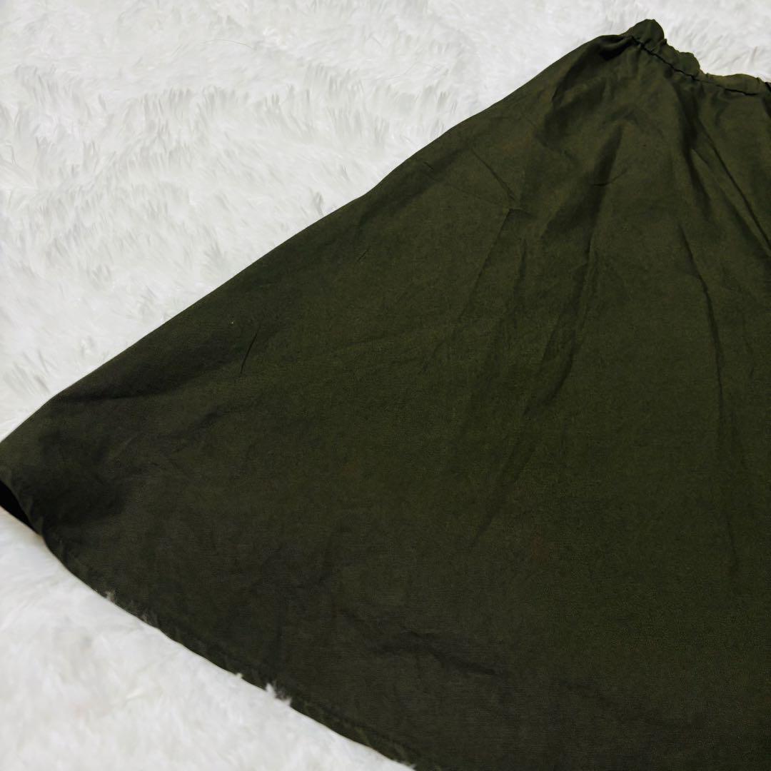 プラステ ひざ丈スカート Mサイズ フレア オリーブ ウエストゴム 181