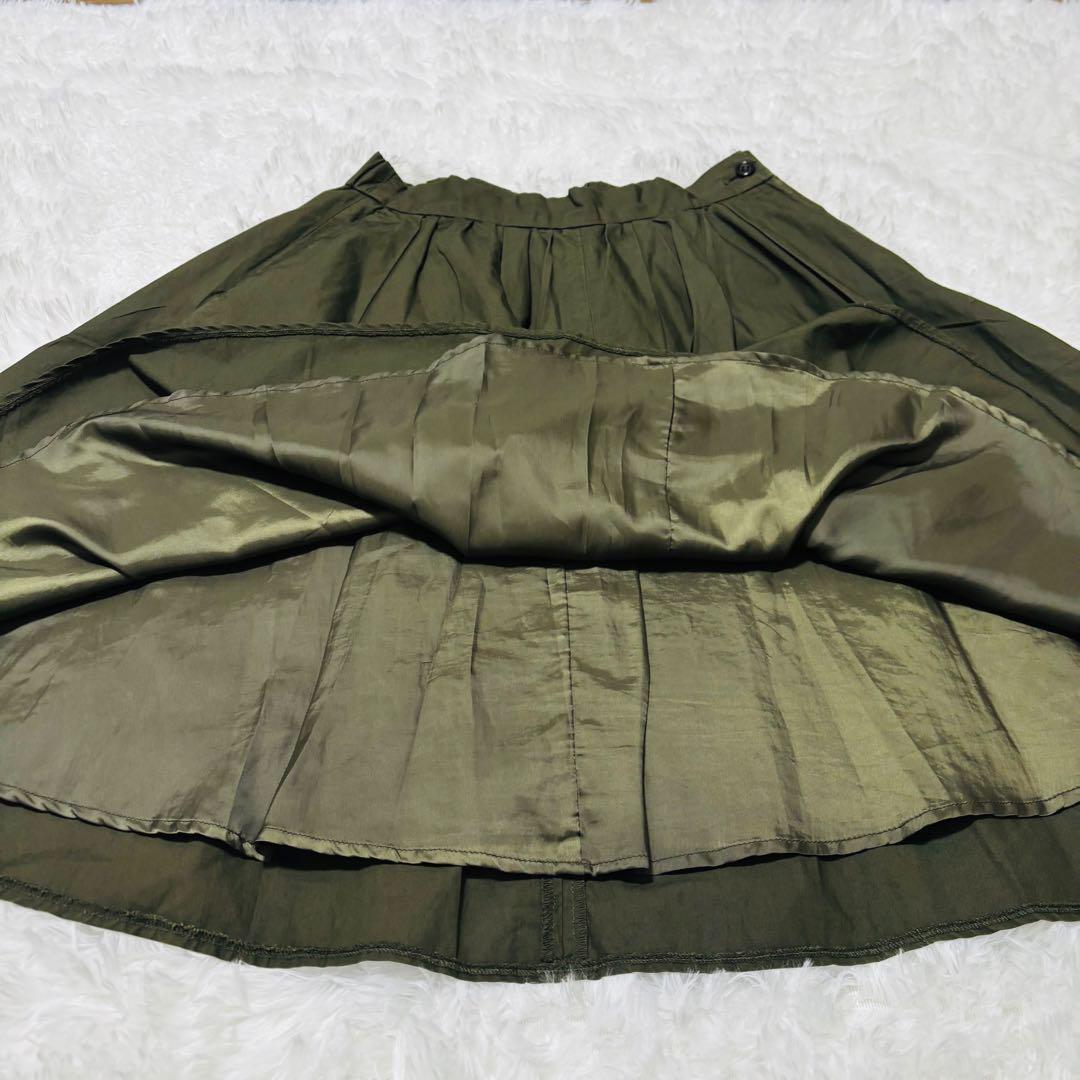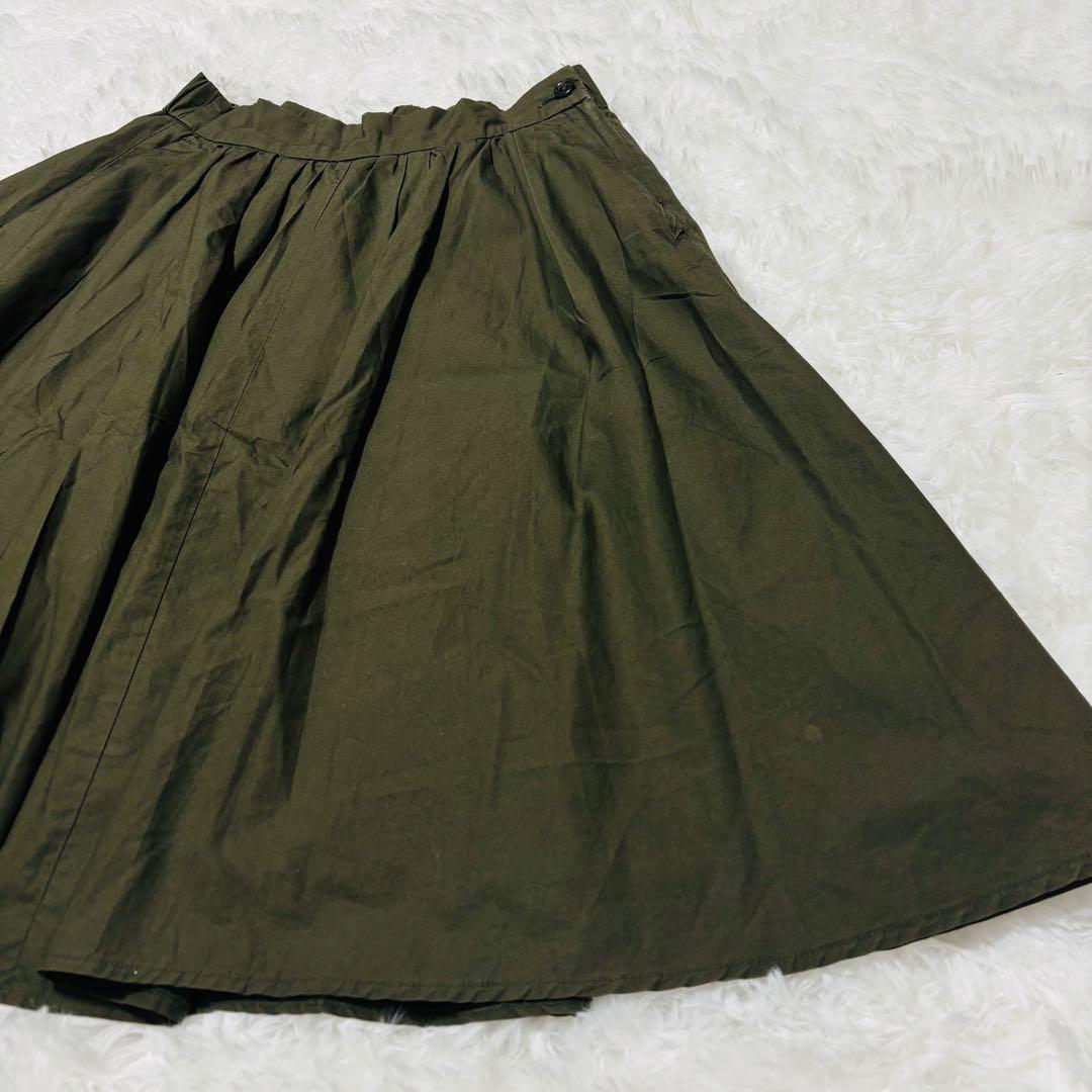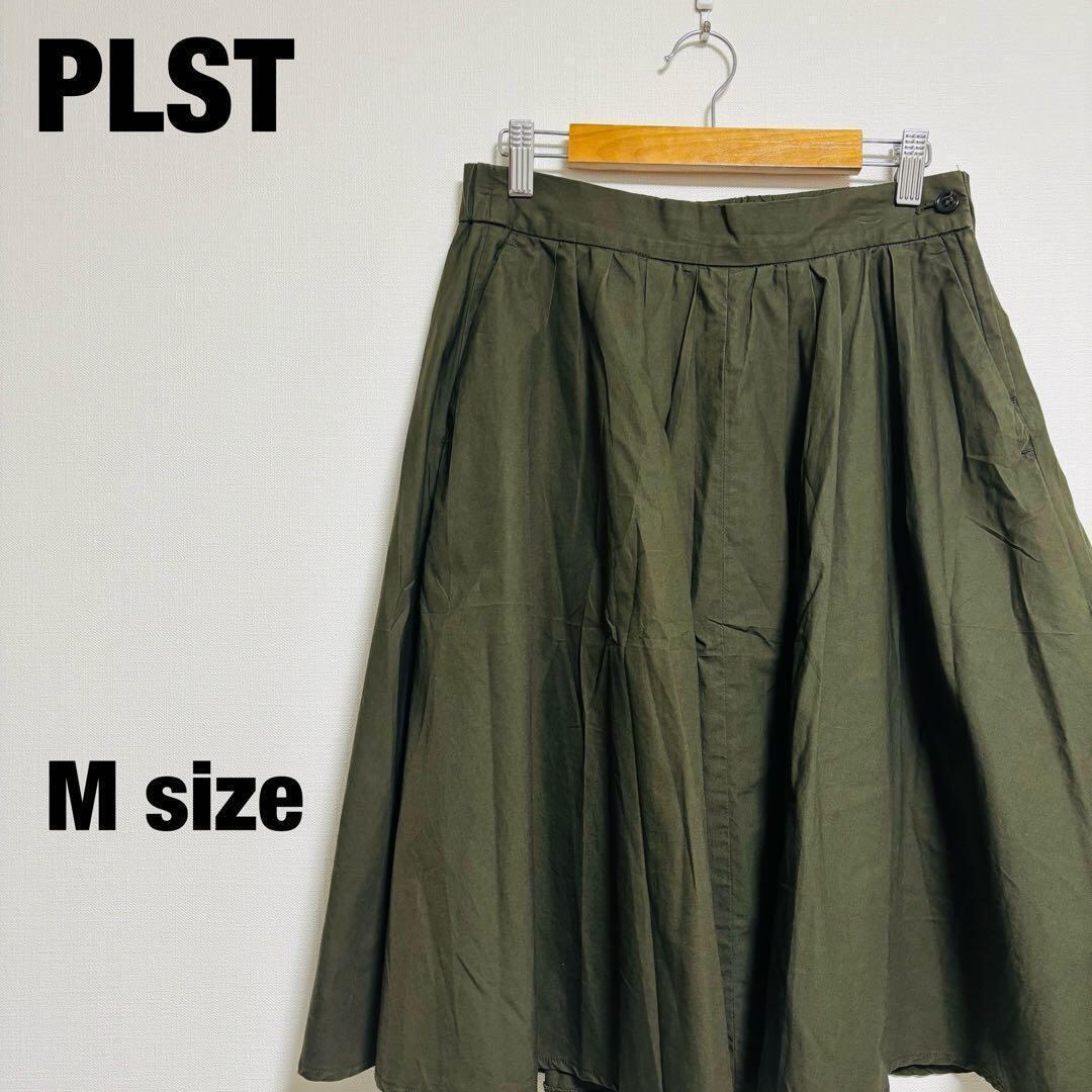 プラステ ひざ丈スカート Mサイズ フレア オリーブ ウエストゴム 181