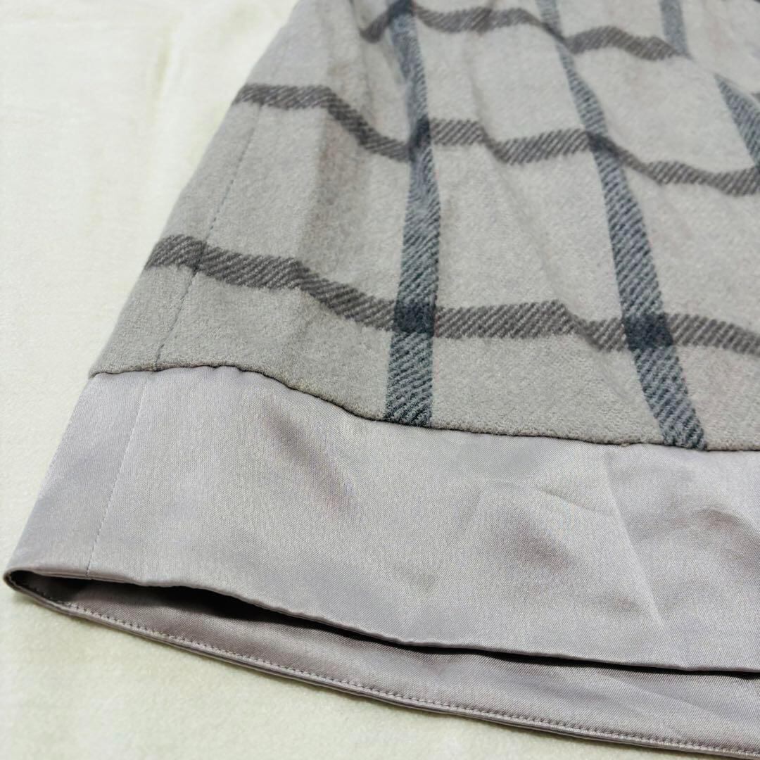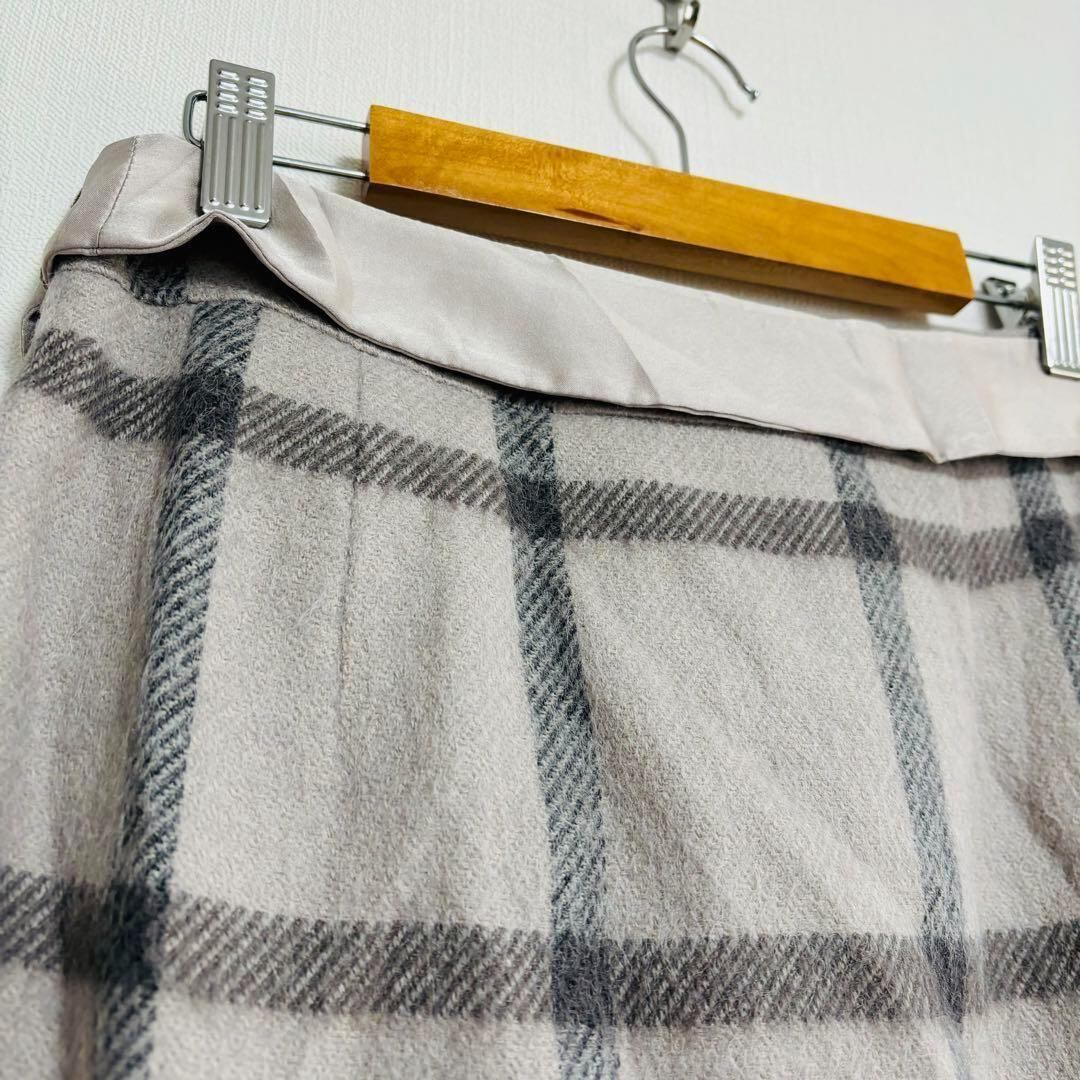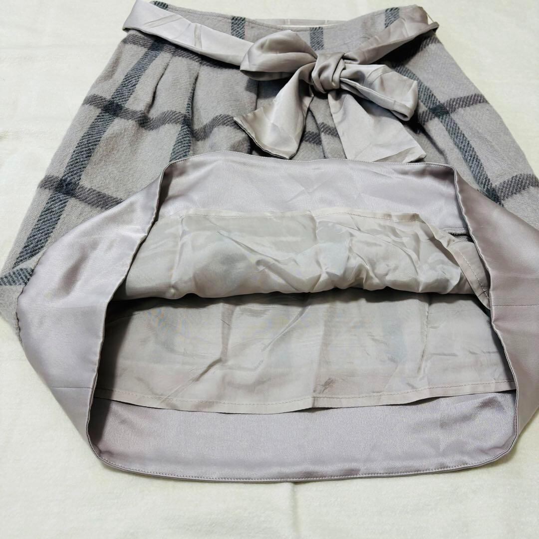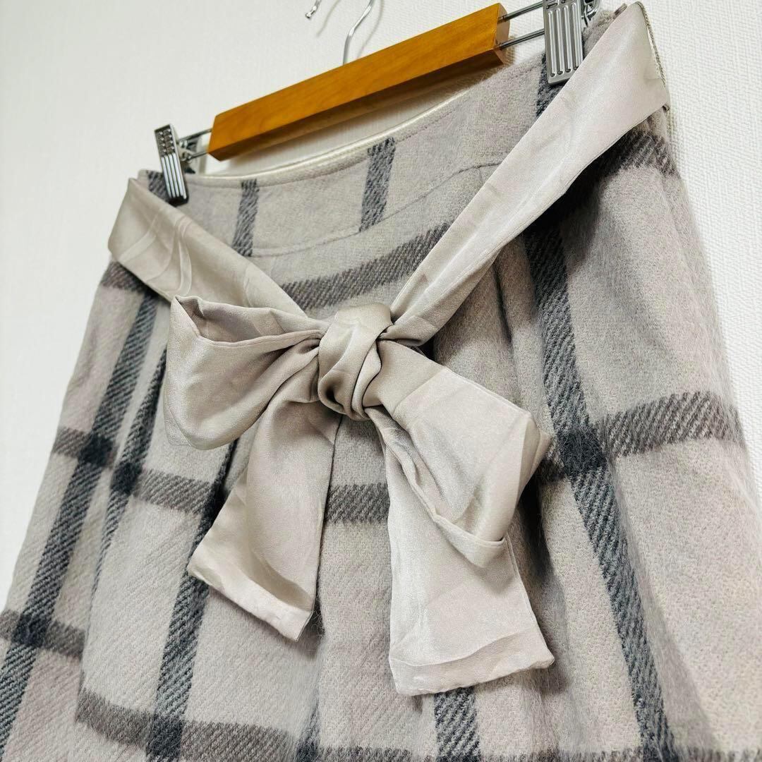 ナチュラルビューティー ひざ丈スカート 台形 リボン チェック L フレア