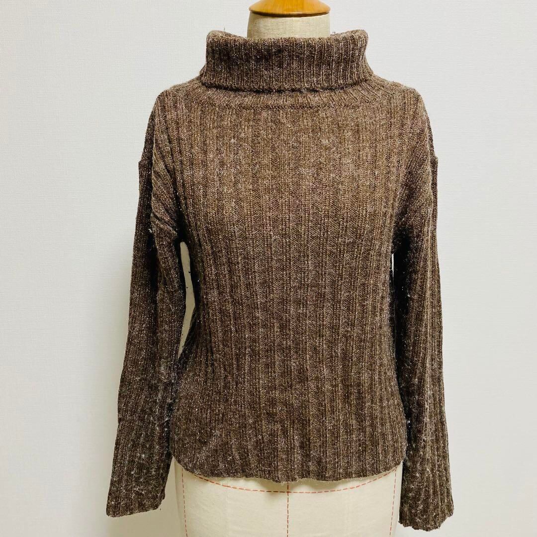 フィニステール セーター タートルネック リブ編み Mサイズ ブラウン 1364