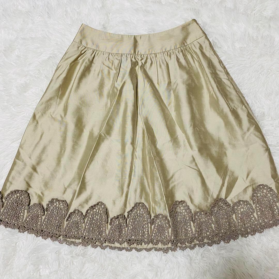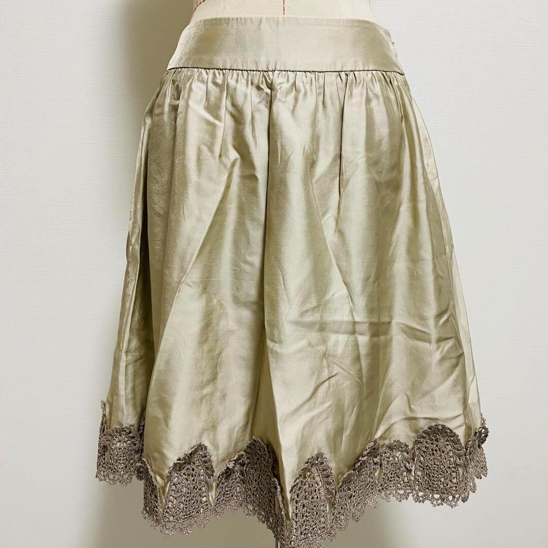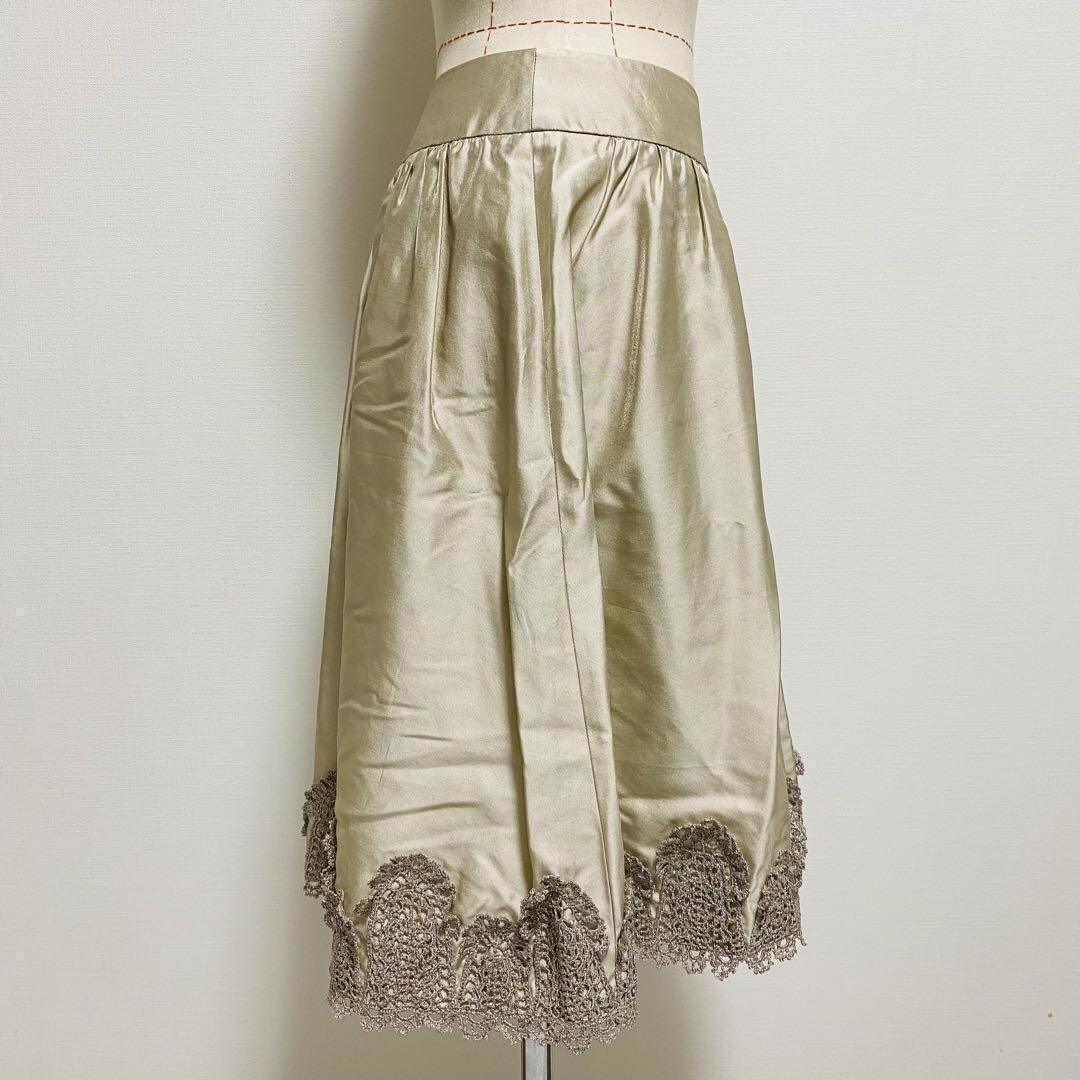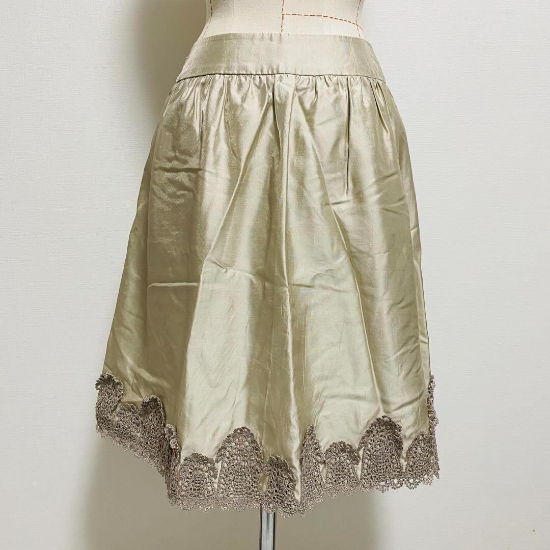 ノーベスパジオ NOVESPAZIO 膝丈スカート シルク フレア 装飾レース