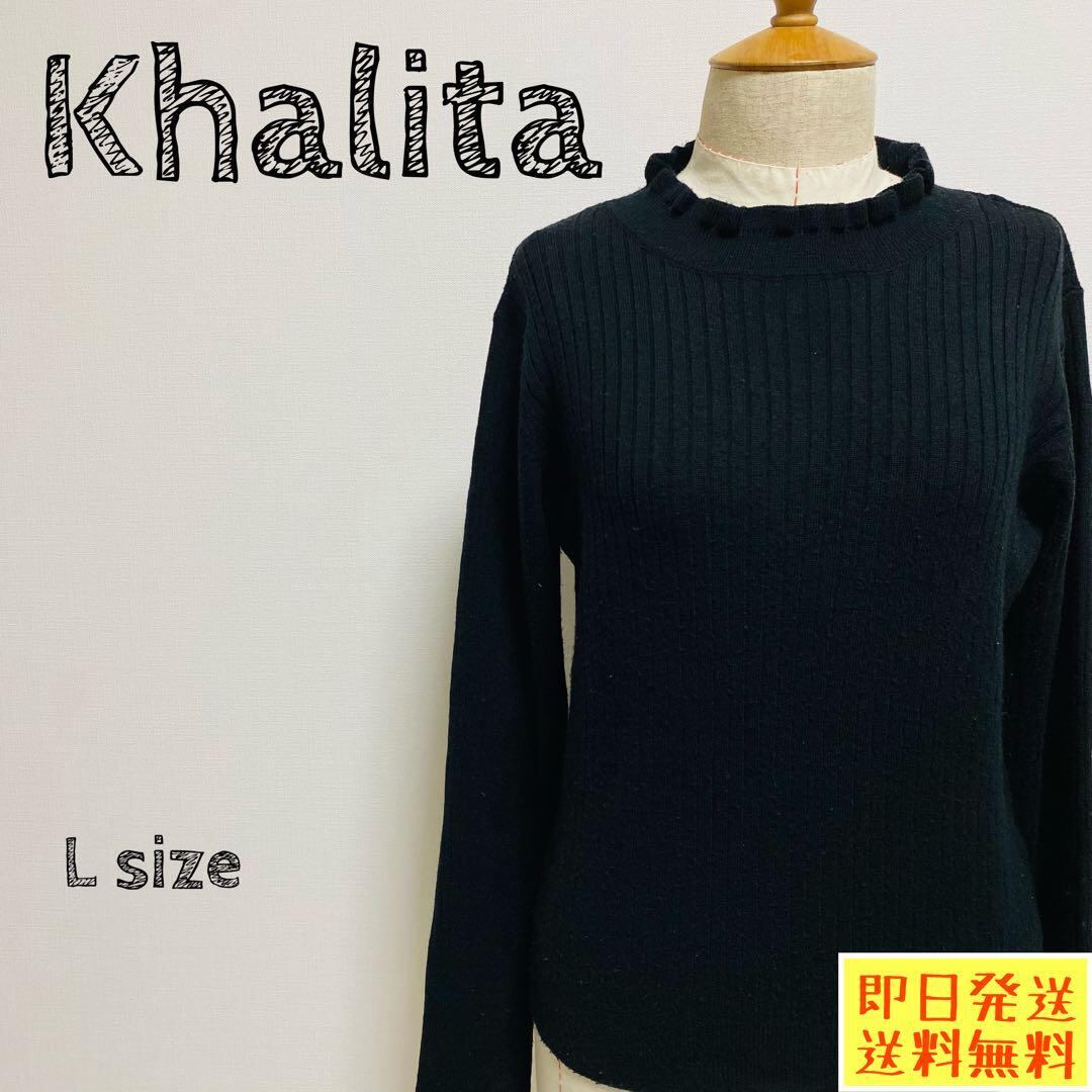 ハリータ Khalita セーター フリル袖 ブラック Lサイズ 長袖1379