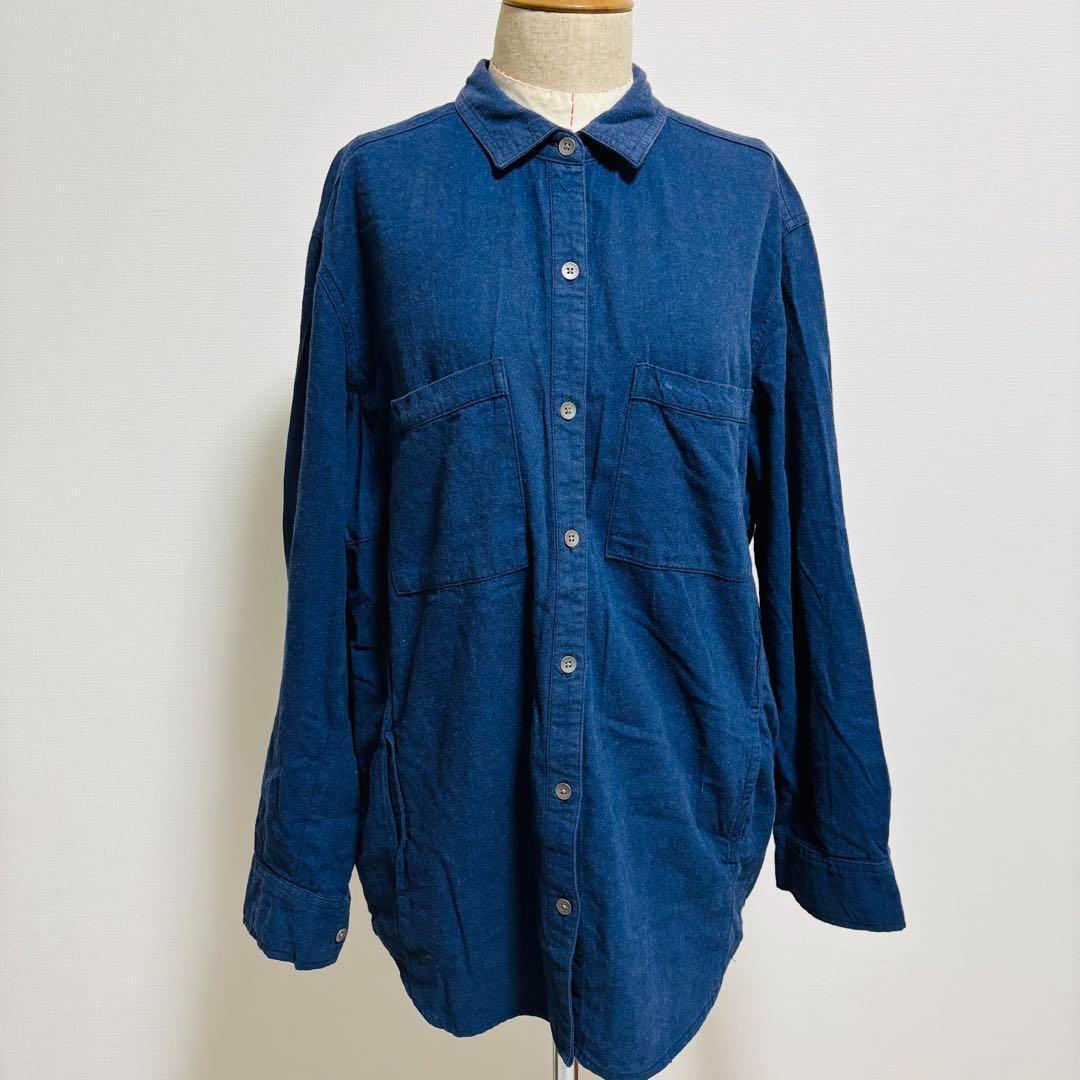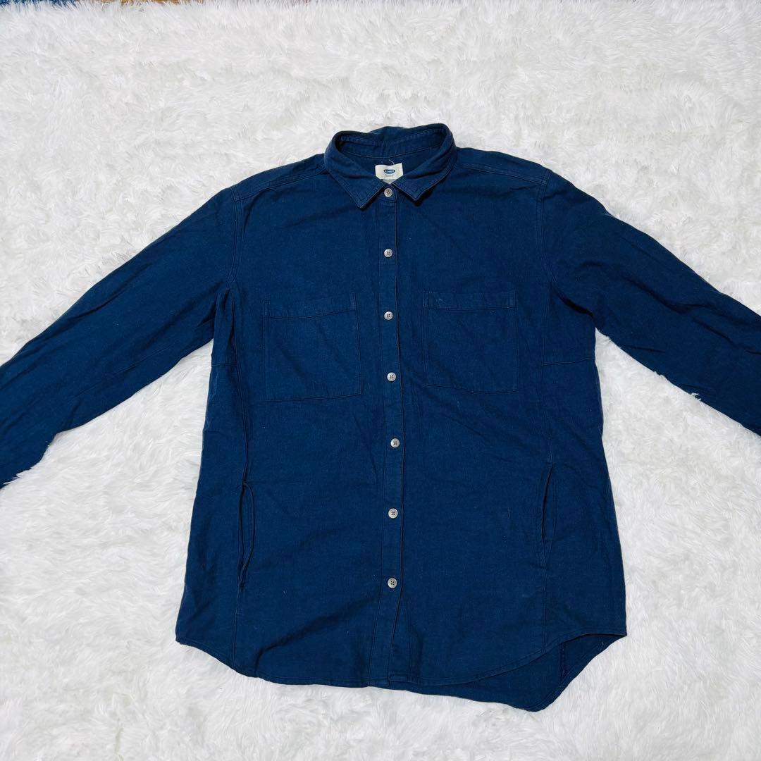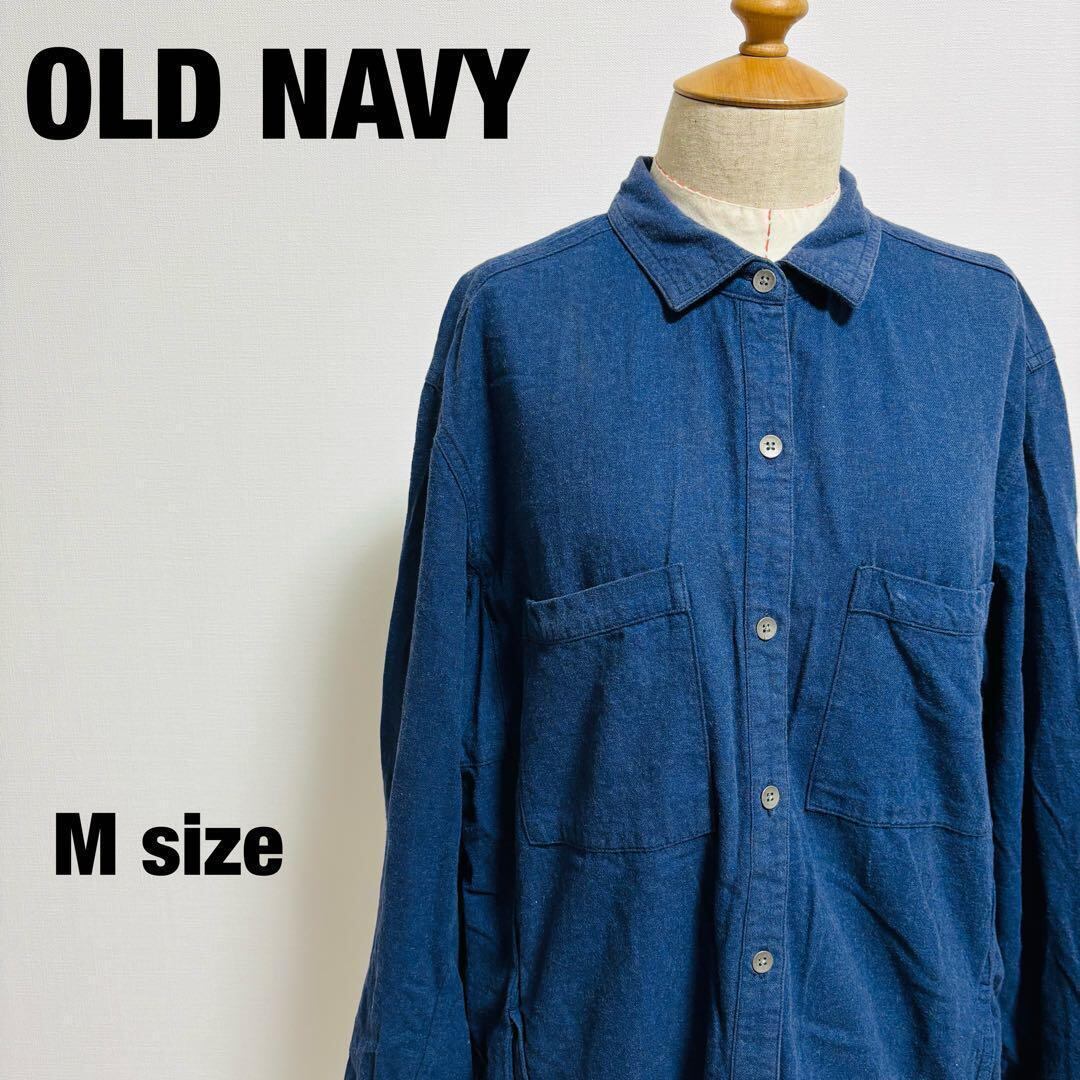 オールドネイビー OLD NAVY ネルシャツ ダークブルー 無地 Mサイズ
